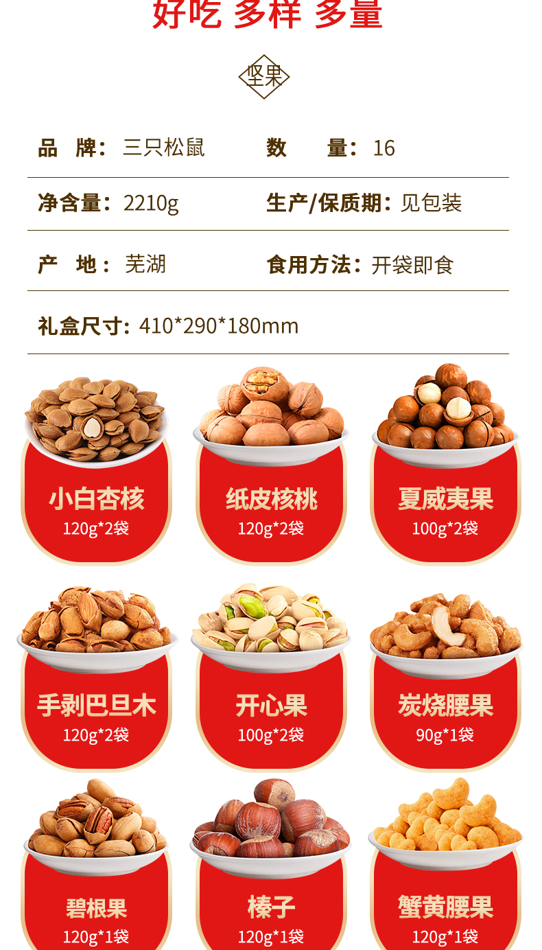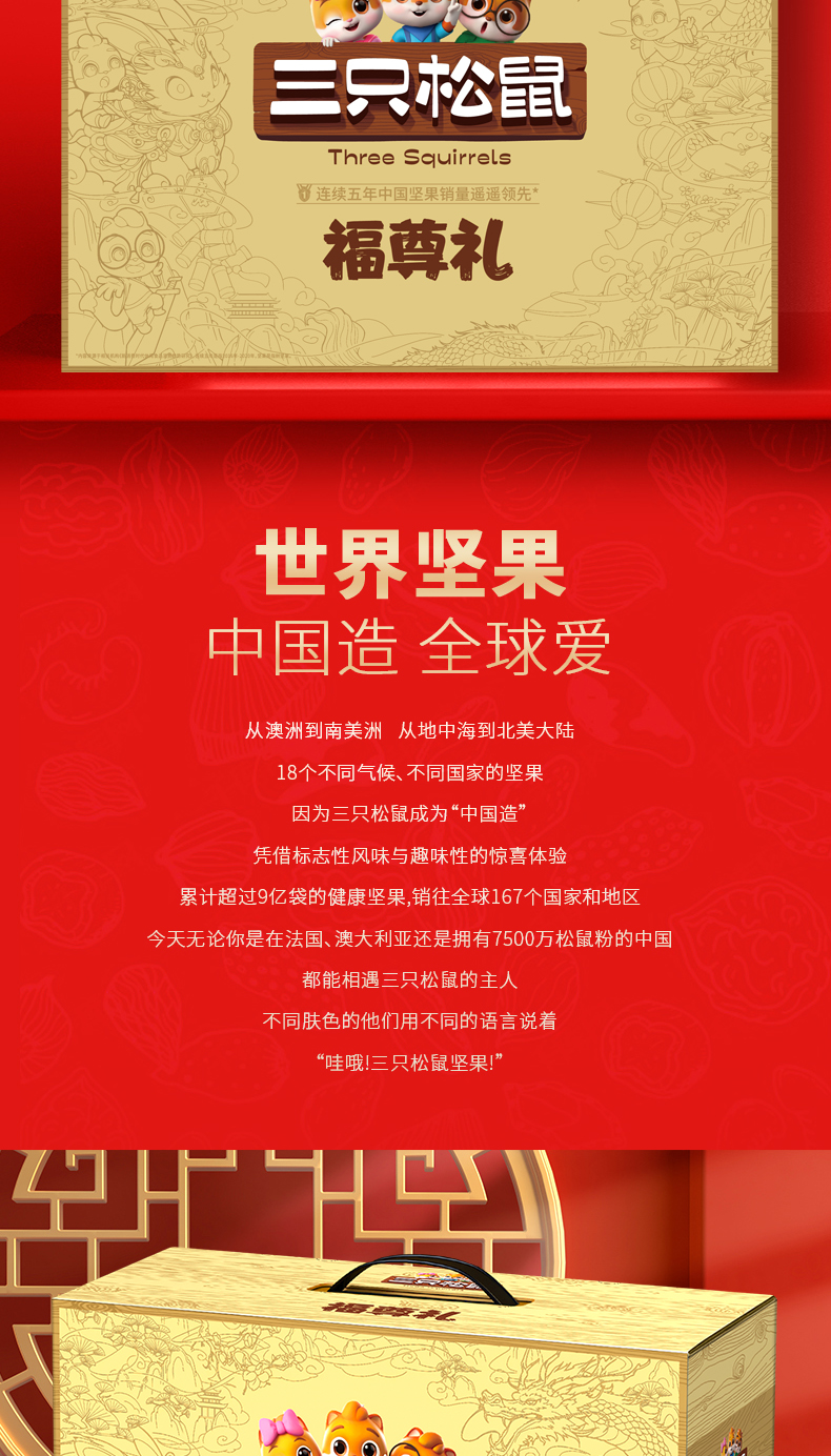 商品名称:三只松鼠2025福尊礼坚果零食礼盒2210g
