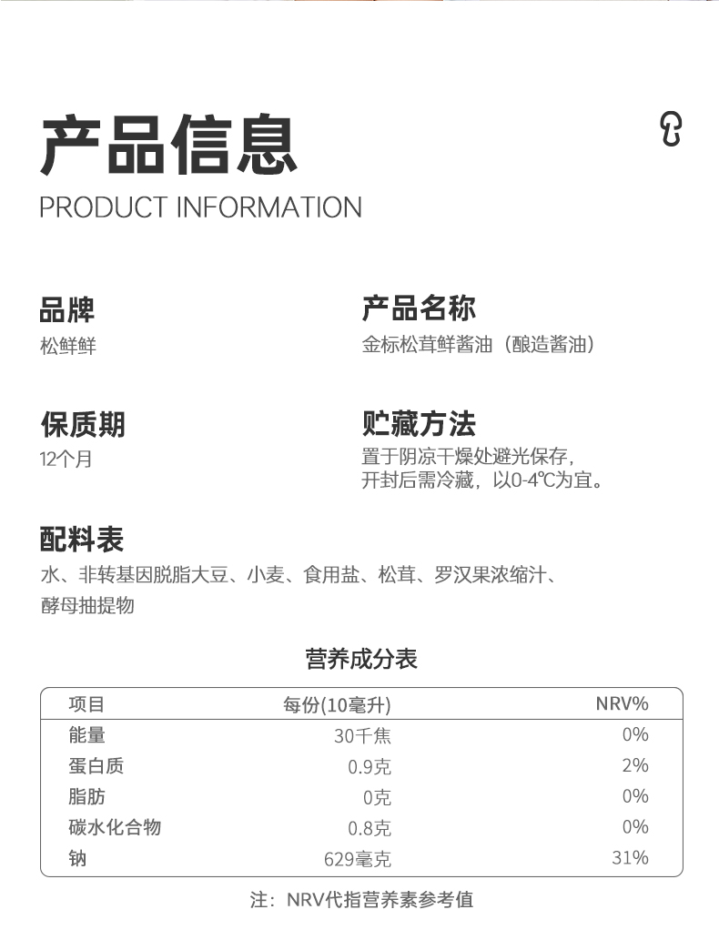 商品名称:松鲜鲜金标松茸鲜酱油1L