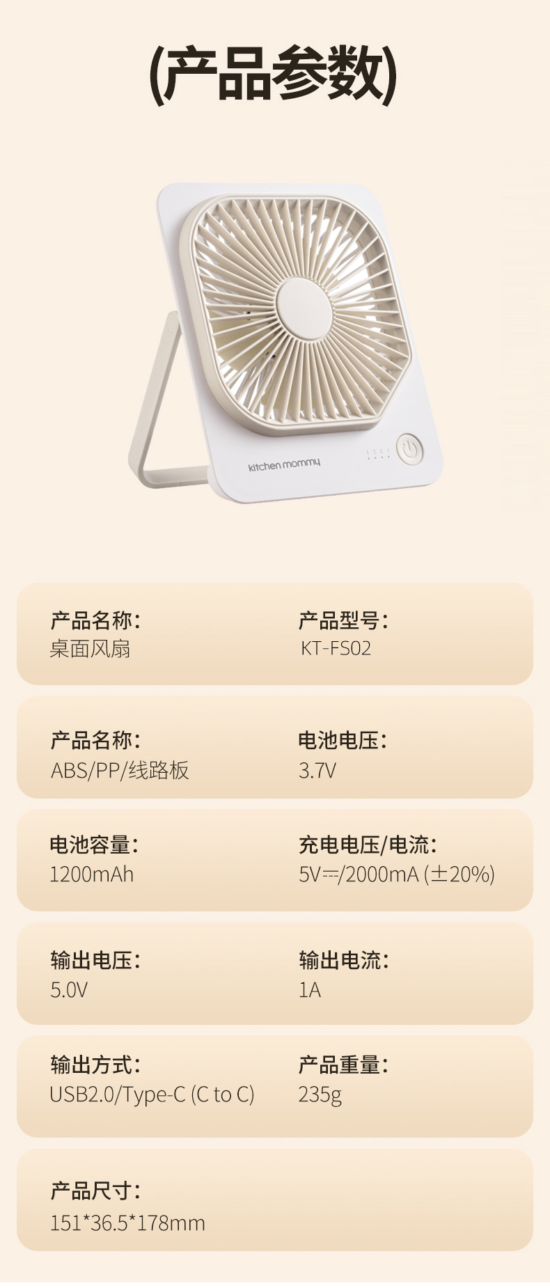 商品名称:kitchen mommy/厨创妈咪桌面风扇KT-FS02