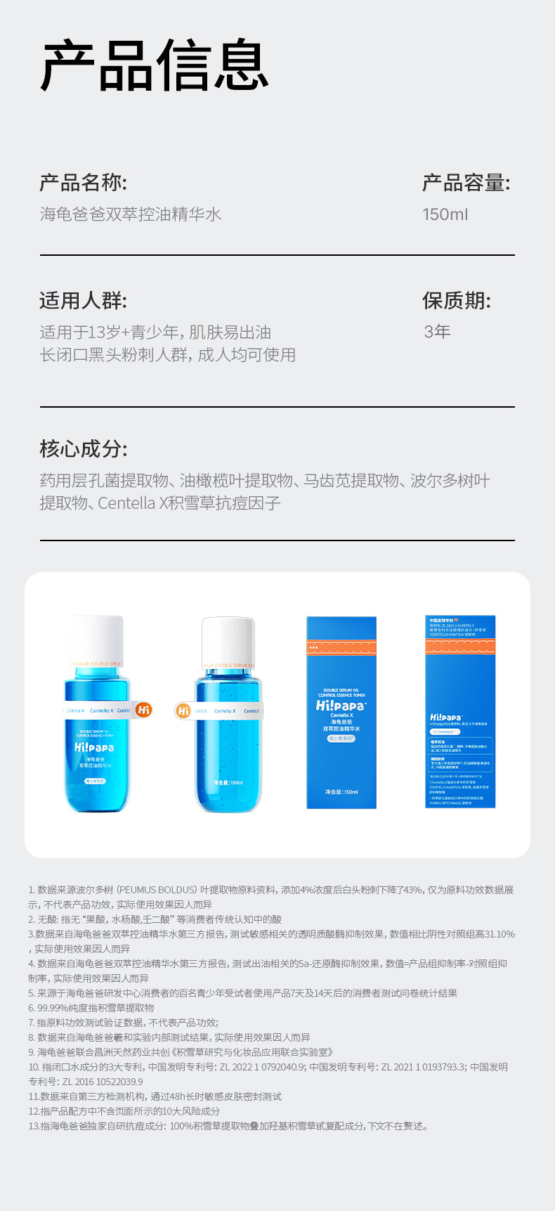 商品名称:Hi papa/海龟爸爸双萃控油精华水150ml