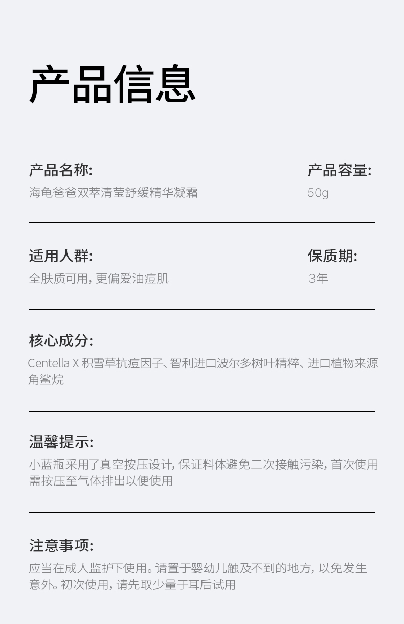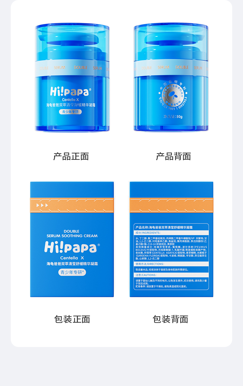 商品名称:Hi papa/海龟爸爸双萃清莹舒缓精华凝霜50g