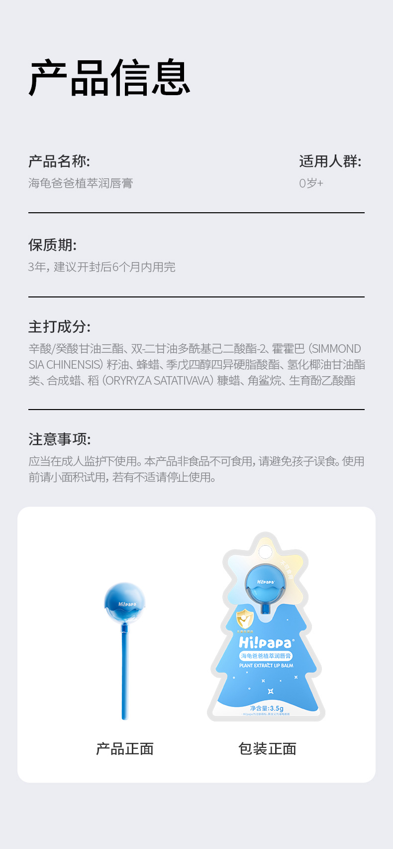 商品名称:Hi papa/海龟爸爸植萃护唇膏3.5g*2支