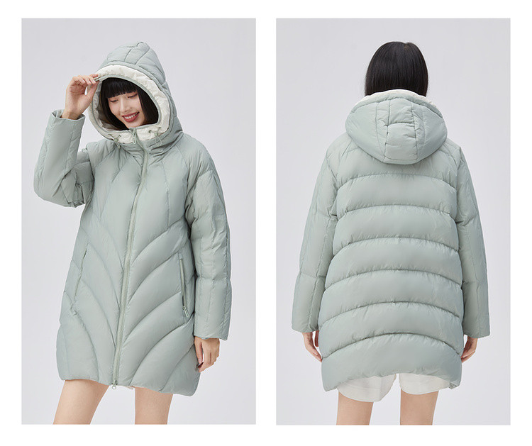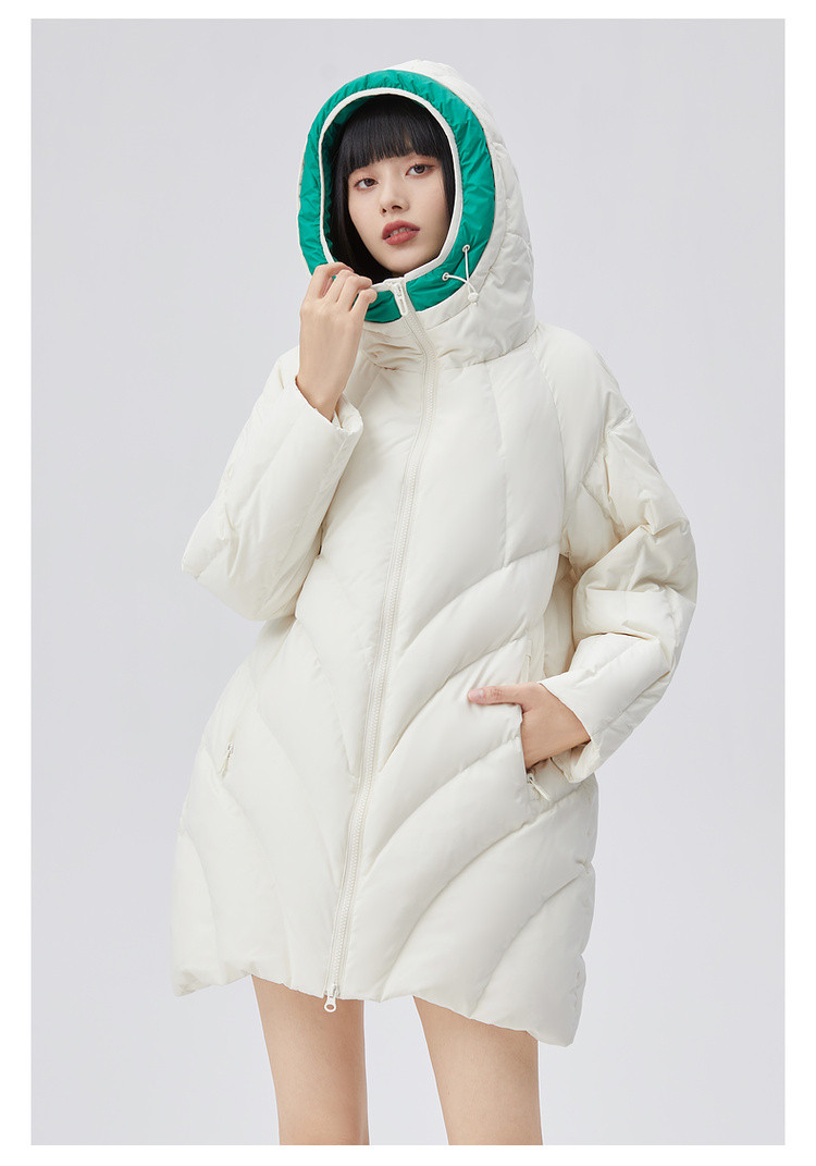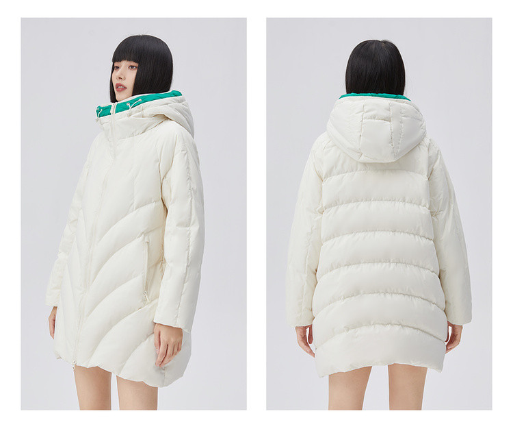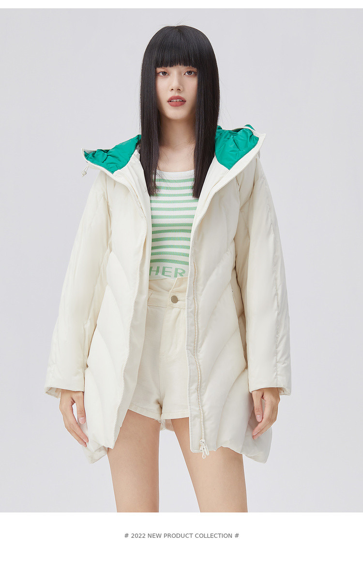 【90鸭绒】茧型长款连帽直筒保暖羽绒服女 246870