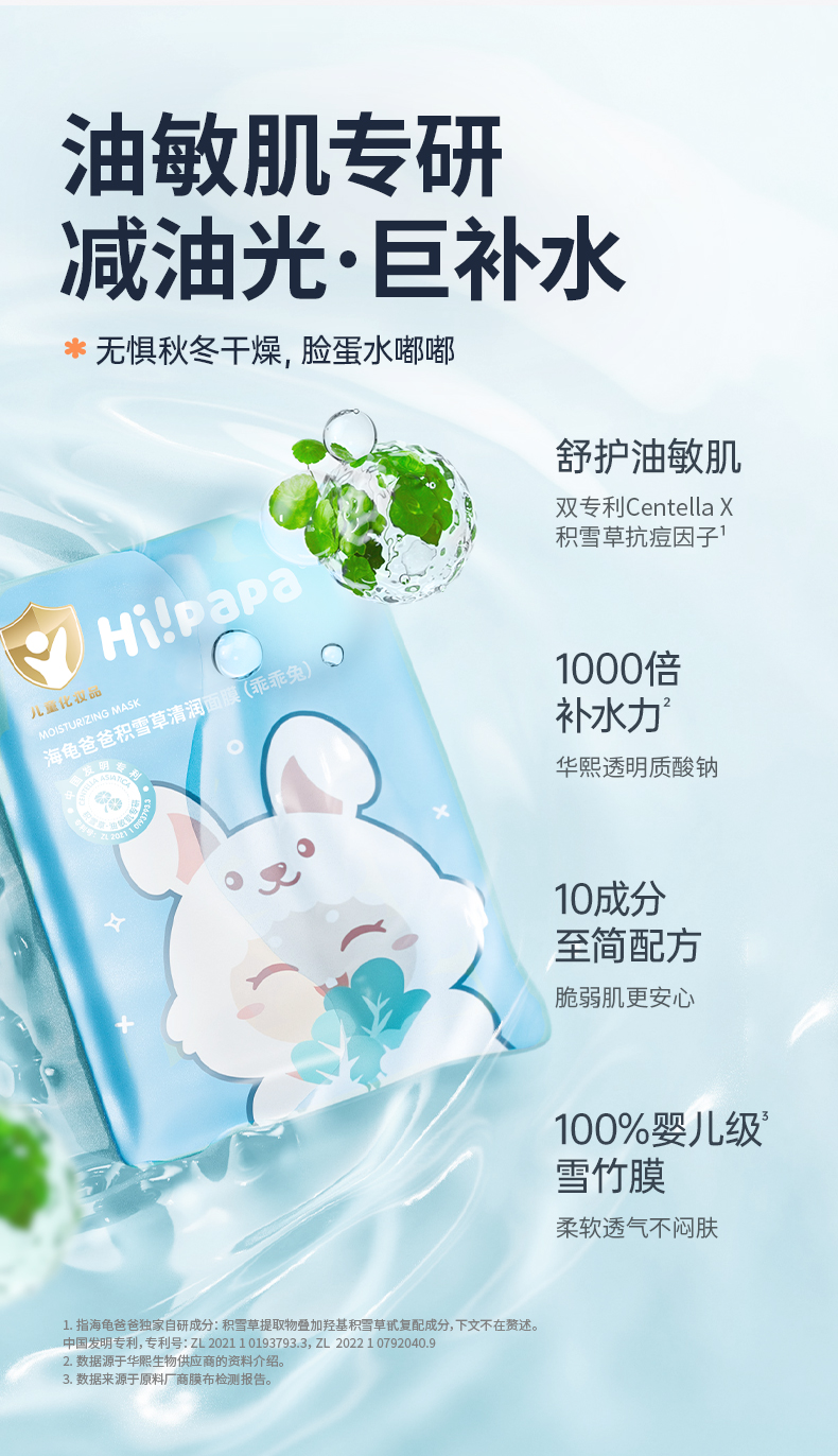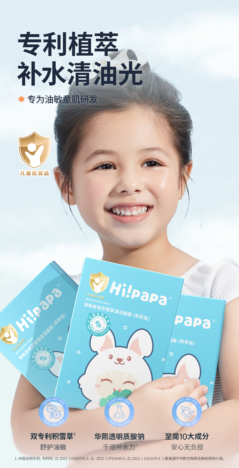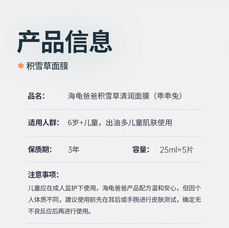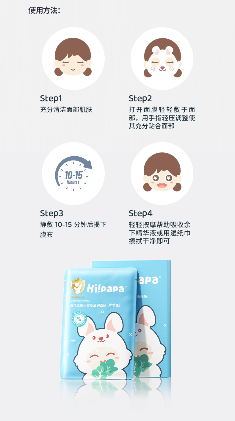 商品名称:Hi papa/海龟爸爸乖乖兔积雪草清润面膜25ml*5片*1盒