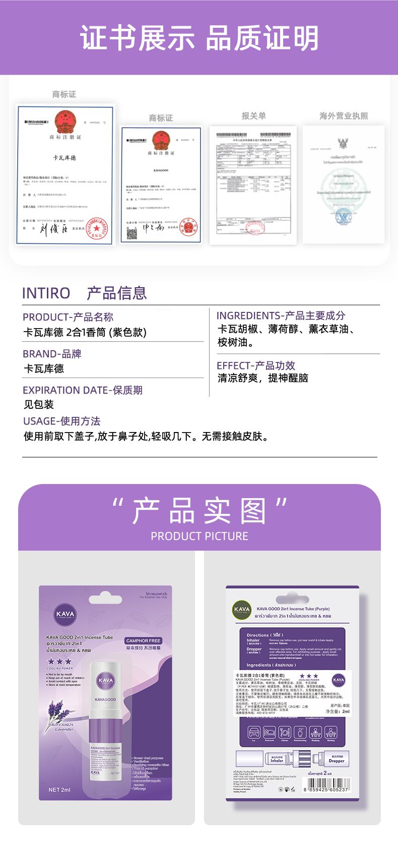 商品名称:KAVAGOOD/卡瓦库德 2合1香筒(紫色款)2ml/支