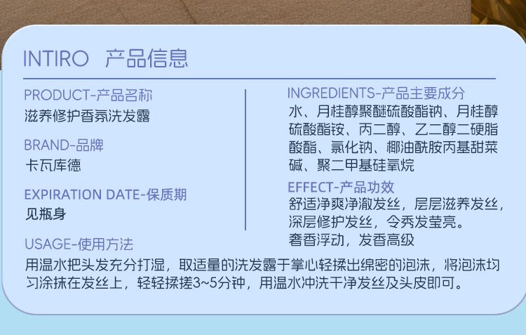 商品名称:KAVAGOOD/卡瓦库德 滋养修护香氛洗发露 380ml/瓶