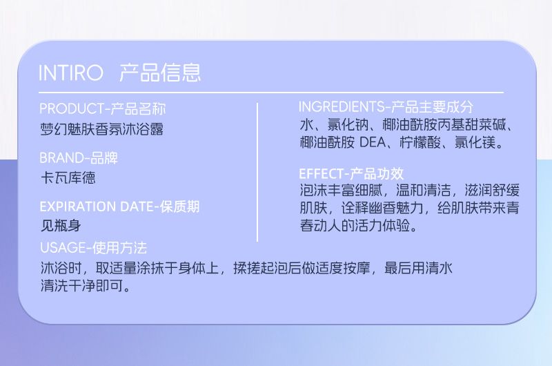 商品名称:KAVAGOOD/卡瓦库德 梦幻魅肤香氛沐浴露 380ml/瓶