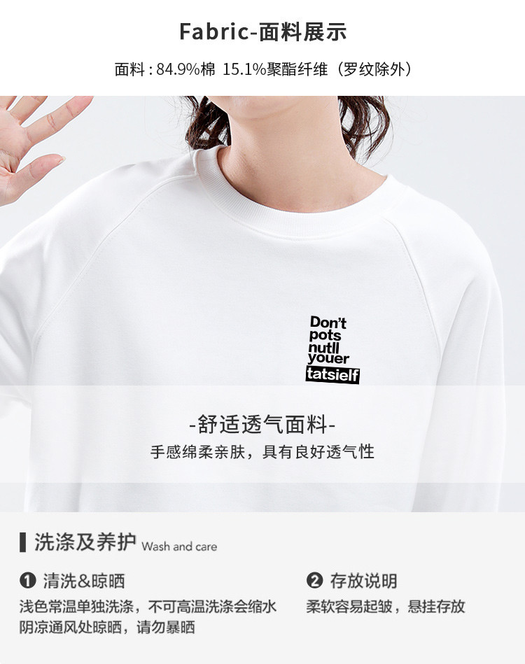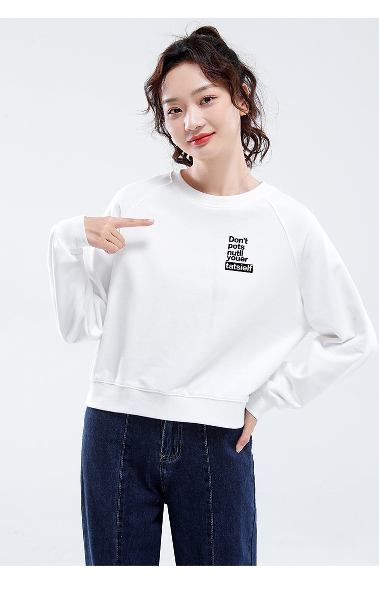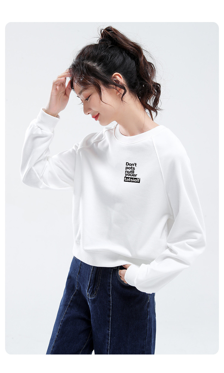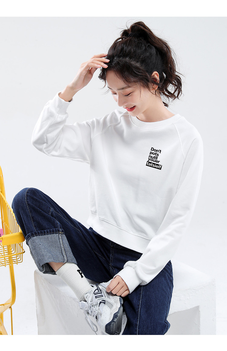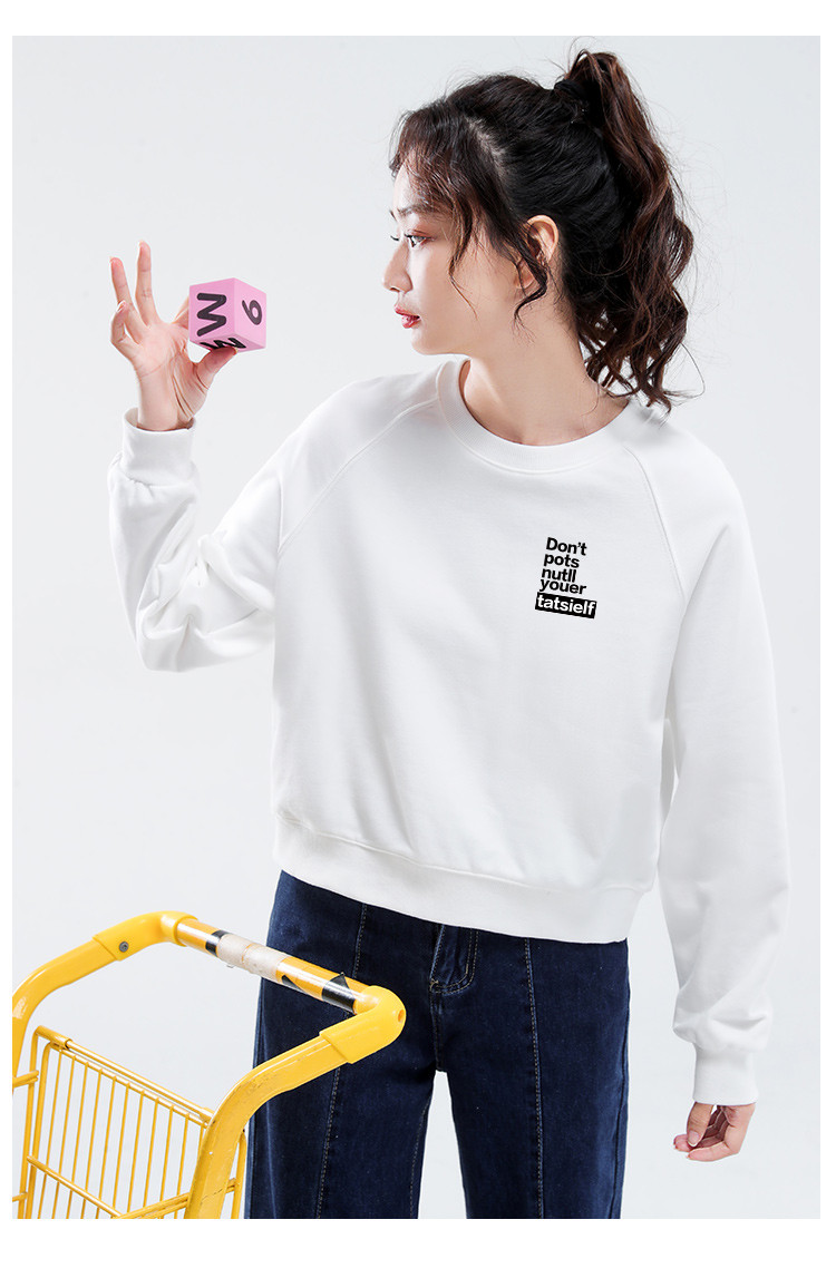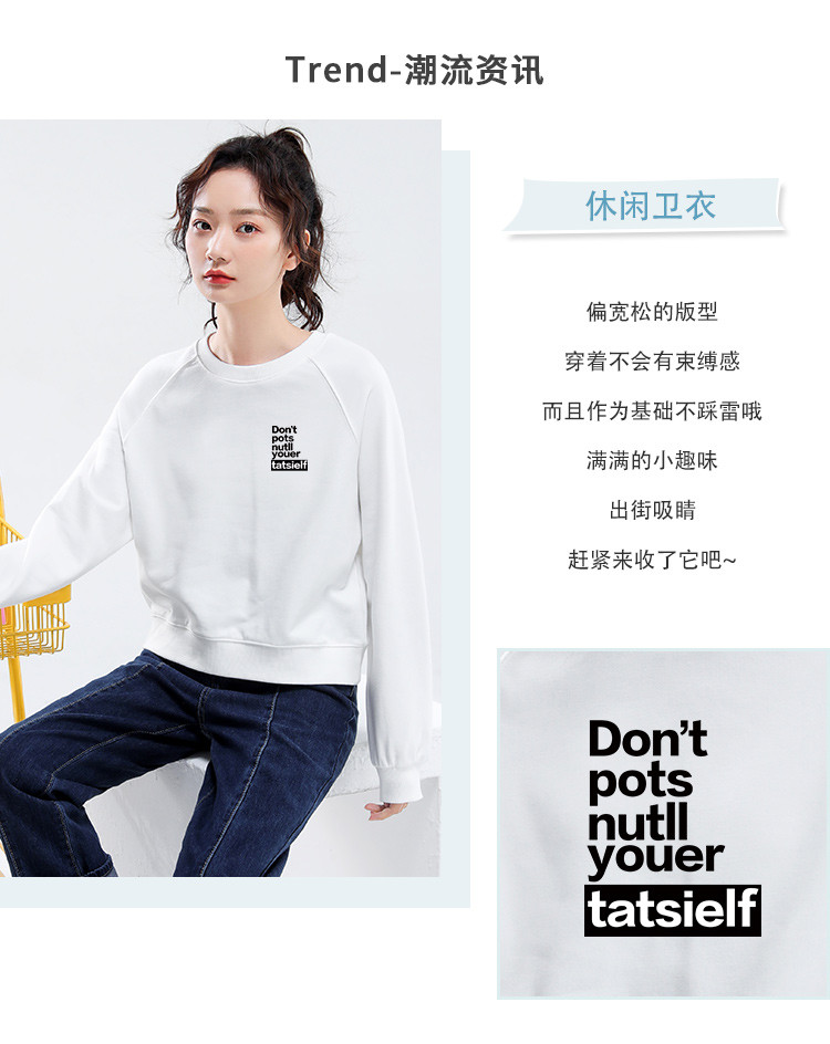 商品名称:米子旗春秋款女式卫衣外套字母印花百搭圆领长袖短款上衣女 232986