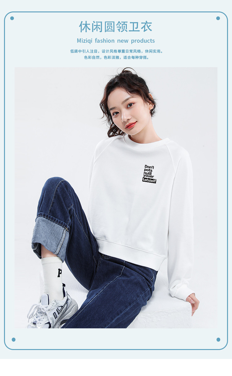 米子旗春秋款女式卫衣外套字母印花百搭圆领长袖短款上衣女 232986