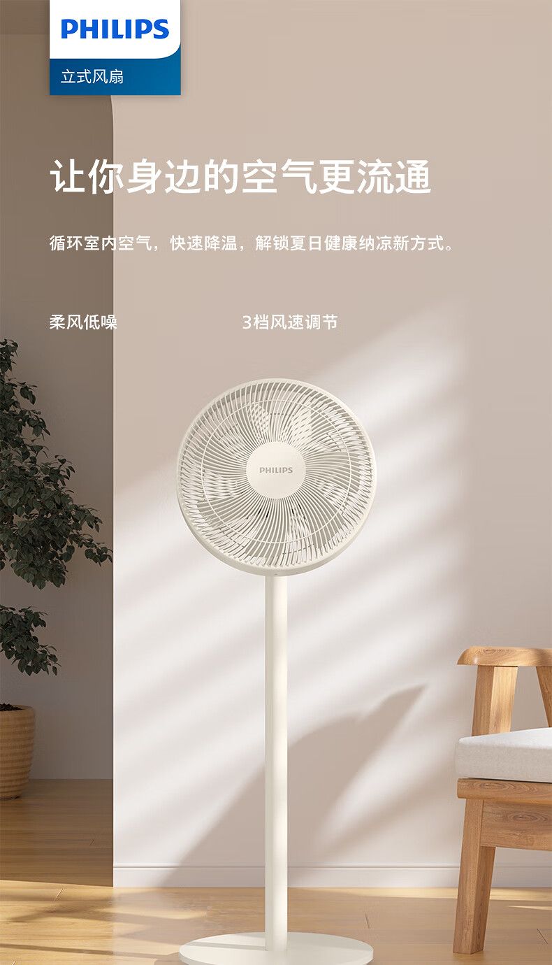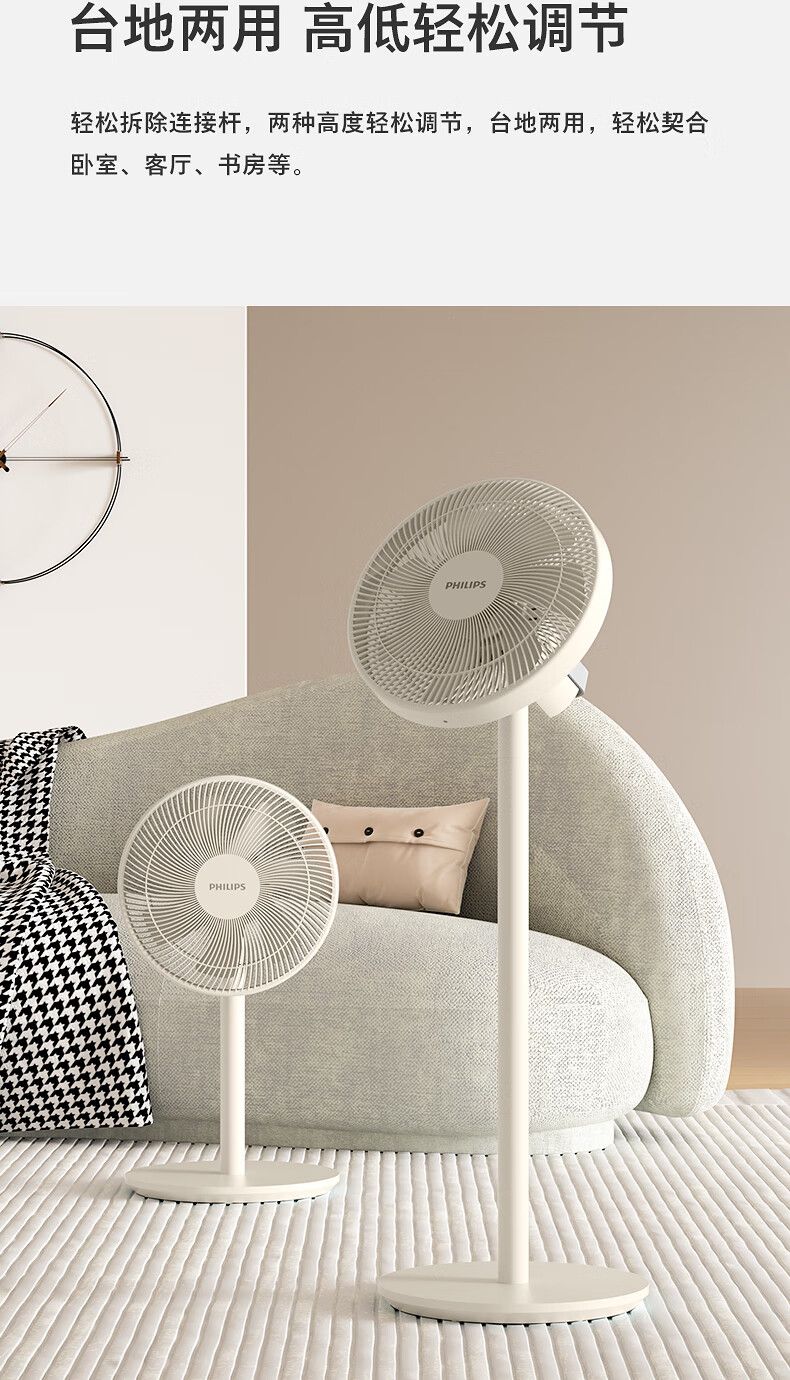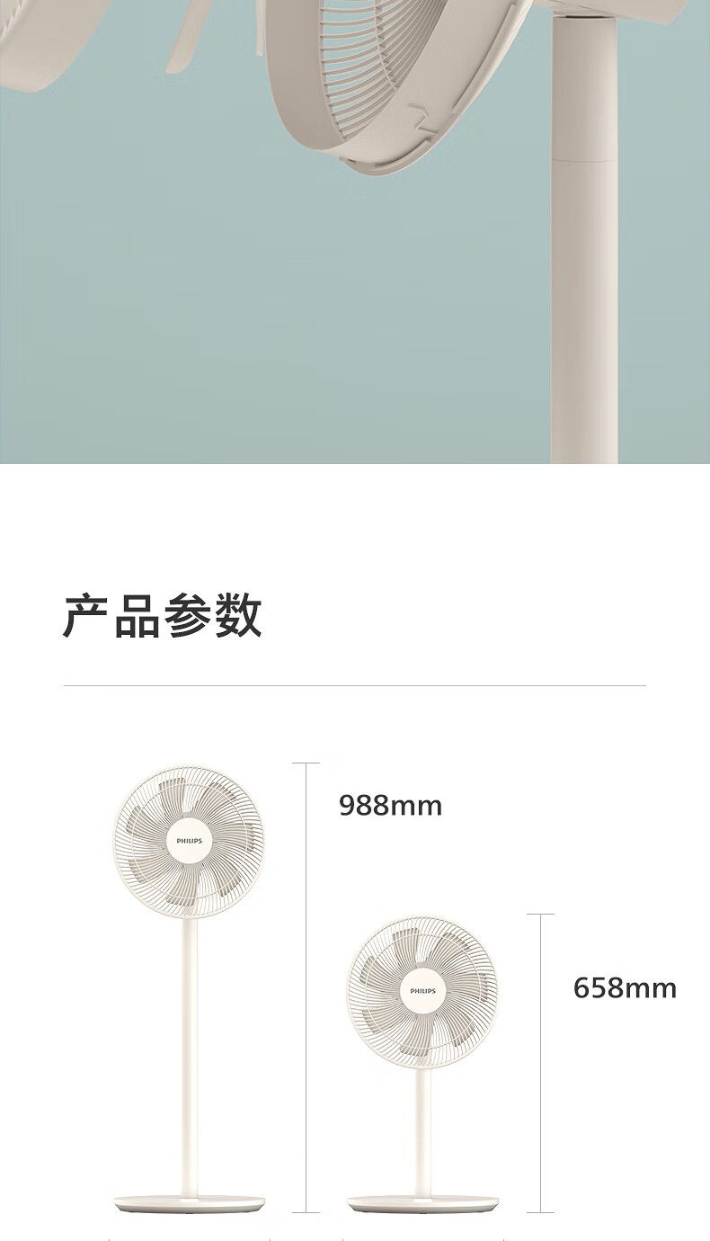 商品名称:飞利浦电风扇落地扇ACR2142SFD 小风扇家用七叶低噪轻音3D送风台地两用米白色小风扇