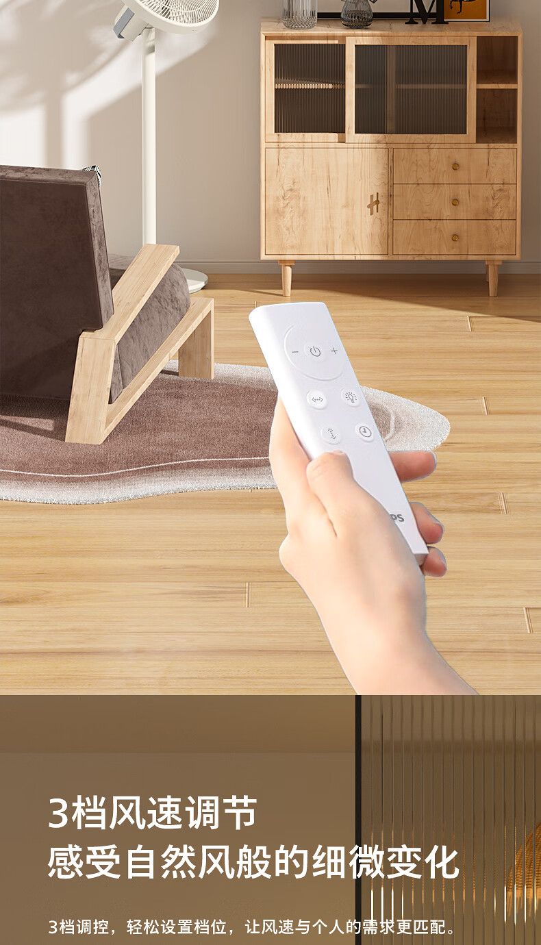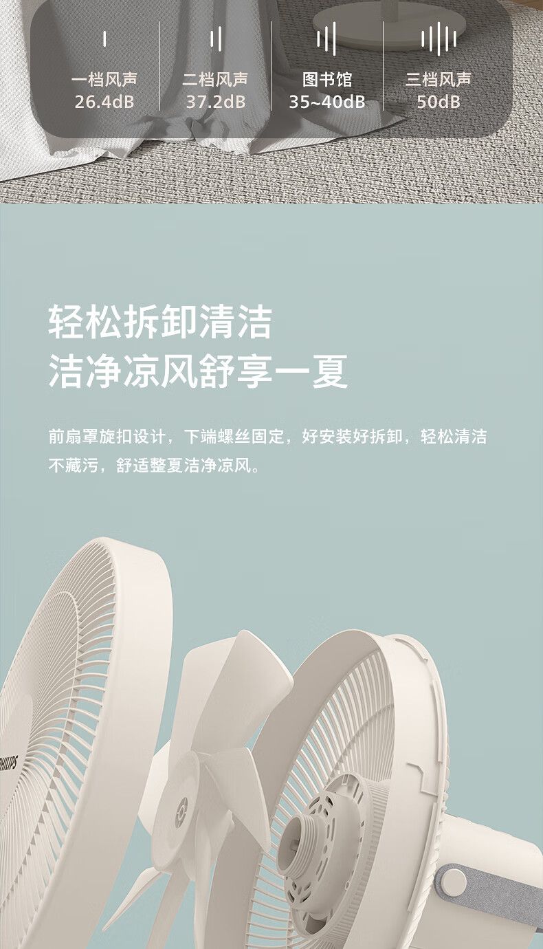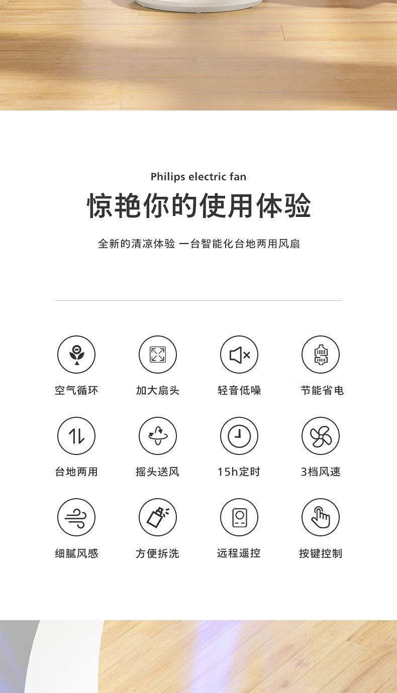 商品名称:飞利浦电风扇落地扇ACR2142SFD 小风扇家用七叶低噪轻音3D送风台地两用米白色小风扇
