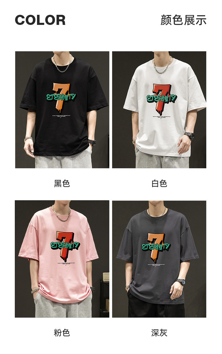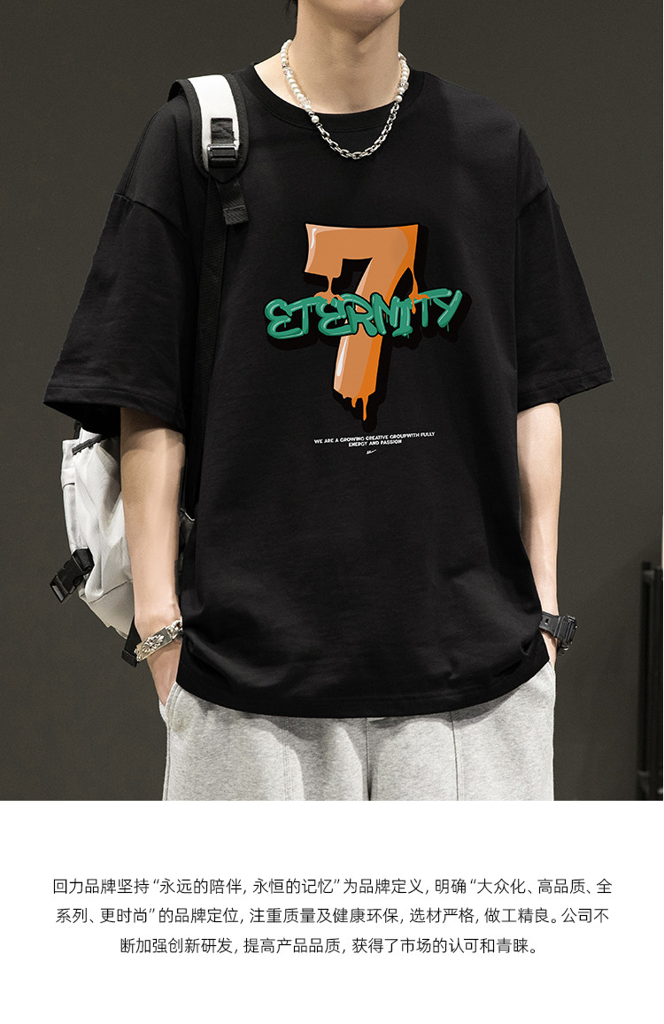 商品名称:【100%棉】重磅短袖t恤男士夏季宽松大码男装潮牌运动上衣 692563