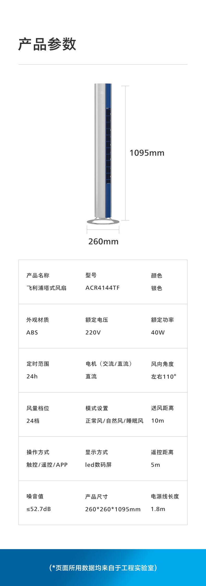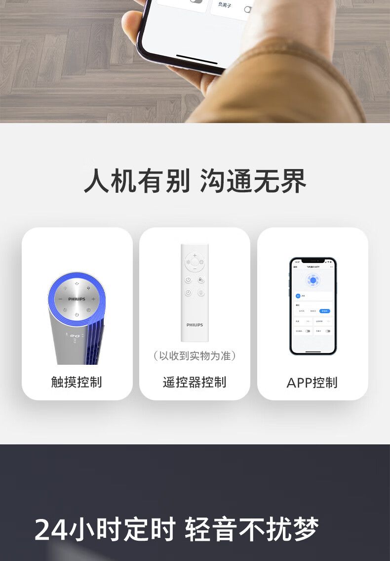 商品名称:飞利浦电风扇ACR4144TF 落地家用塔扇直流变频无叶风扇智能遥控定时卧室客厅大风量立式遥头扇