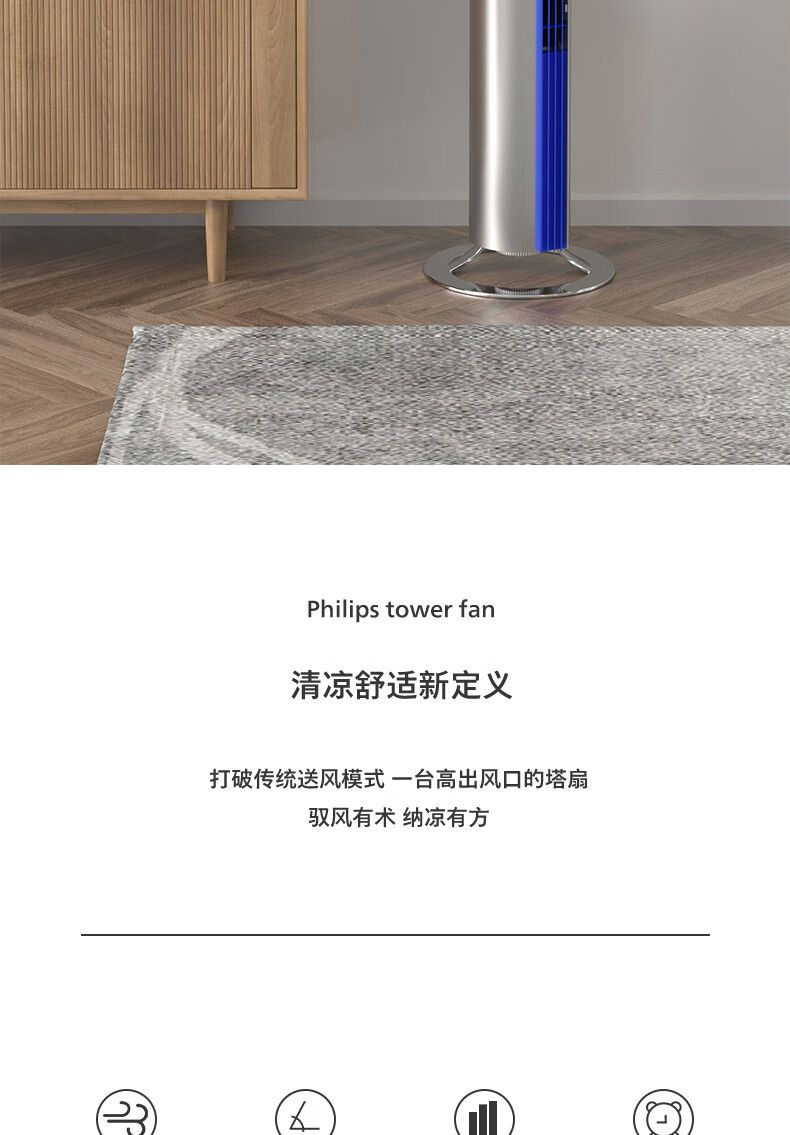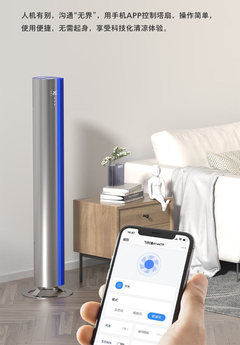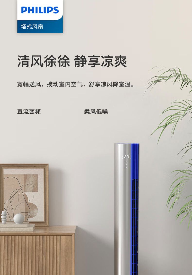 飞利浦电风扇ACR4144TF 落地家用塔扇直流变频无叶风扇智能遥控定时卧室客厅大风量立式遥头扇