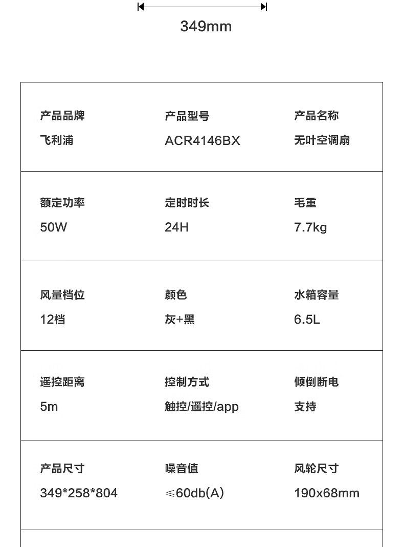 商品名称:飞利浦空调扇ACR4146BX 制冷风扇冷风机无叶水冷风扇家用遥控加湿冷气机办公室卧室客厅冷气扇