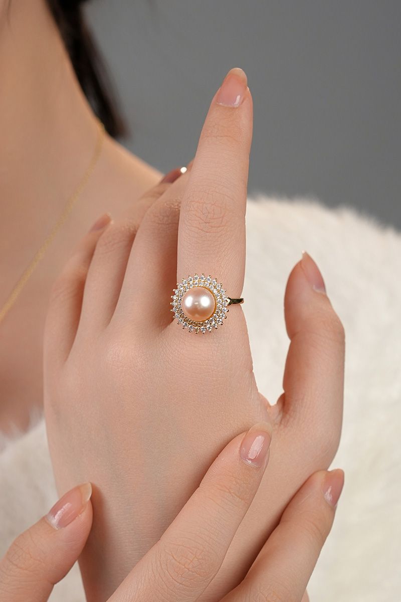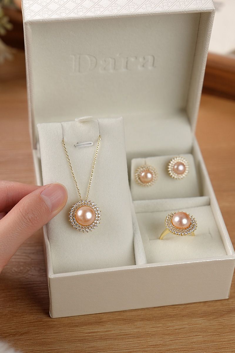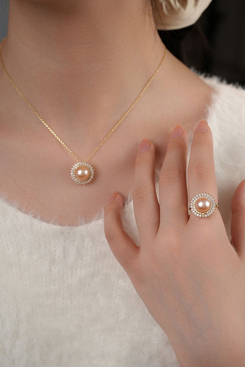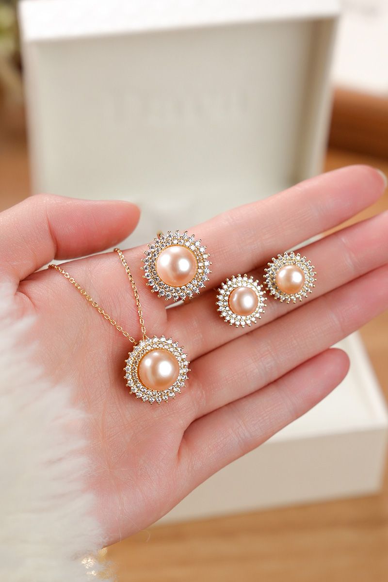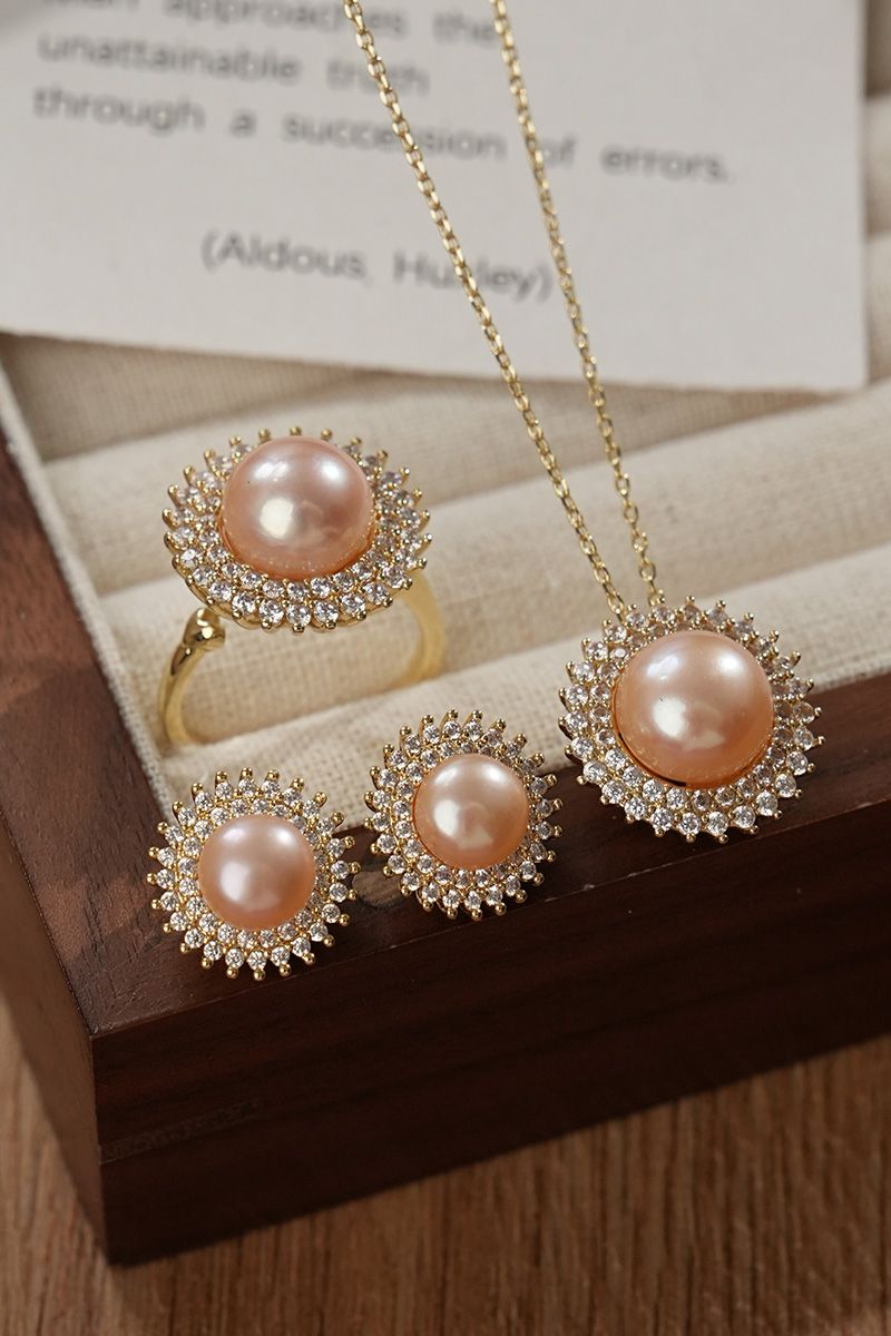 商品名称:(附证书)《向阳花》淡水无核中国红珍珠吊坠 耳钉 戒指三件套装