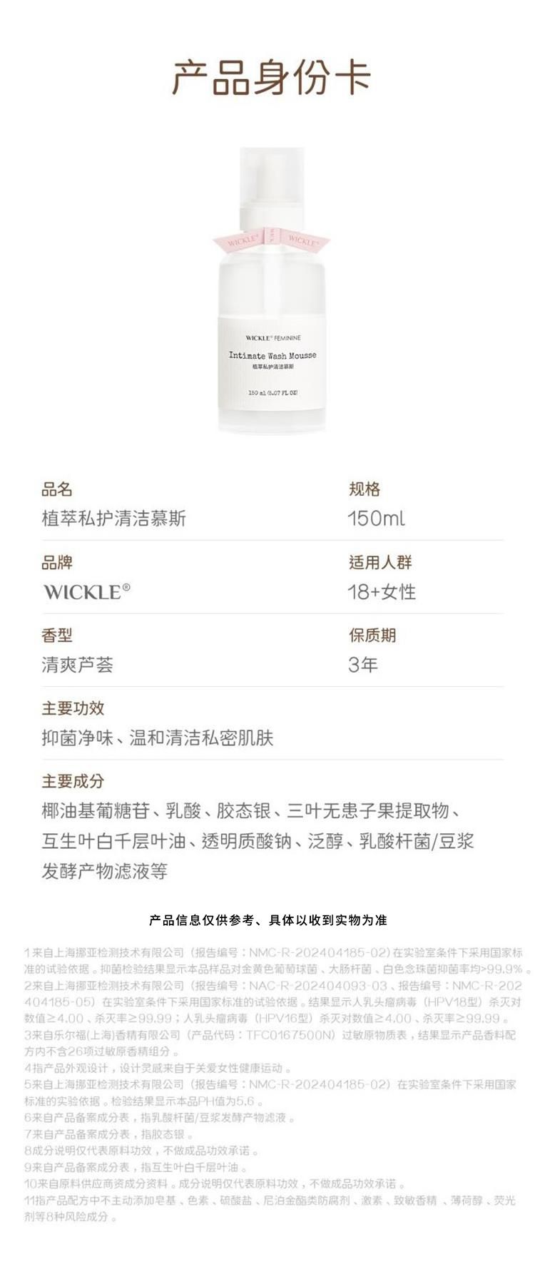 商品名称:WICKLE/惟呵植萃私处清洁慕斯150ml
