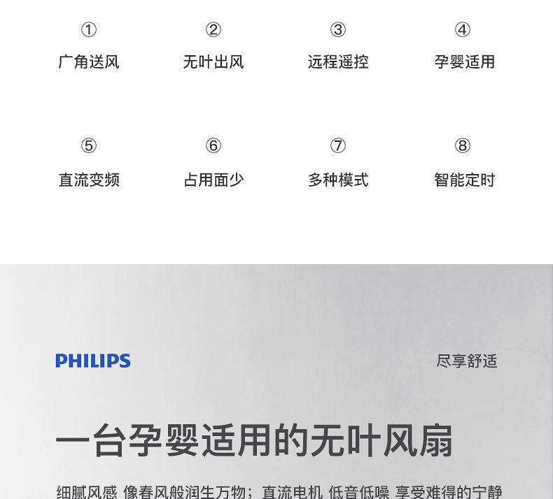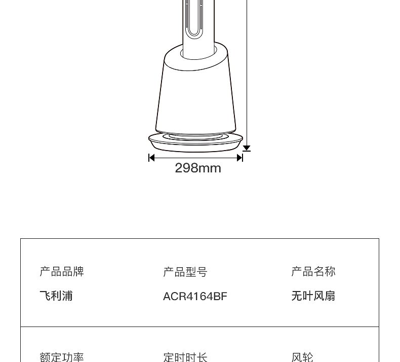 商品名称:飞利浦无叶风扇ACR4164BF 智能塔扇直流变频电风扇家用涡轮遥控落地扇节能冷风扇立式移动空调扇