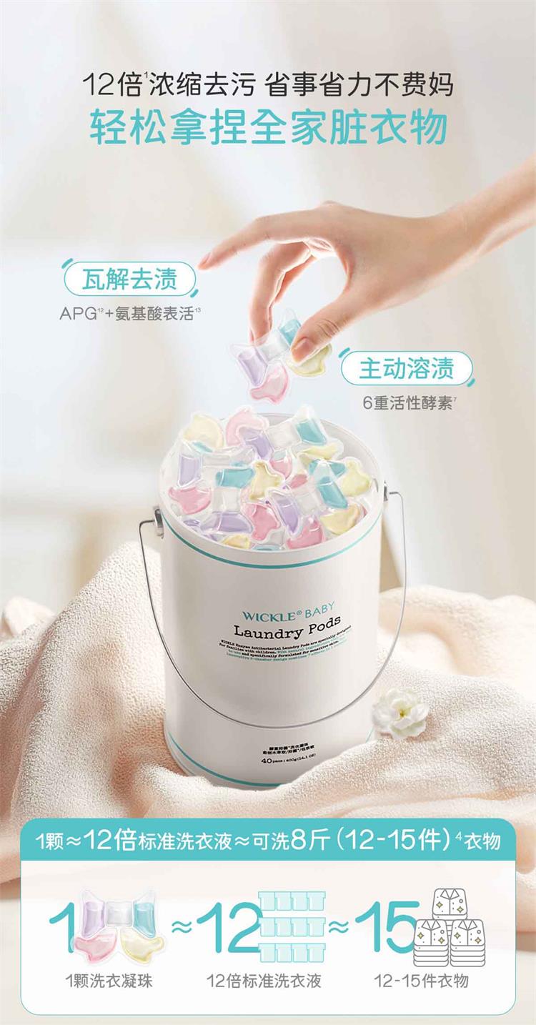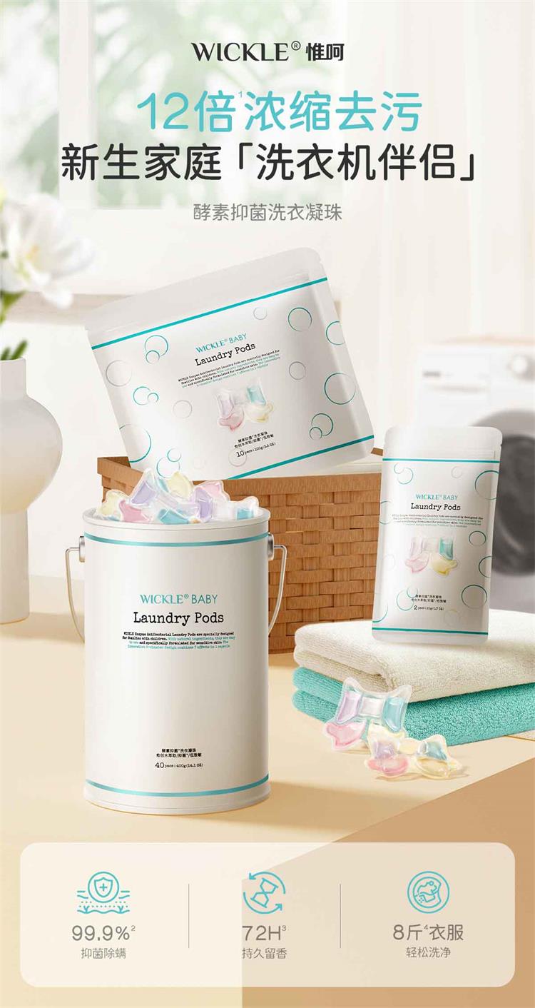 WICKLE惟呵酵素抑菌洗衣凝珠浓缩五腔五合一留香珠护色去渍除菌除螨
