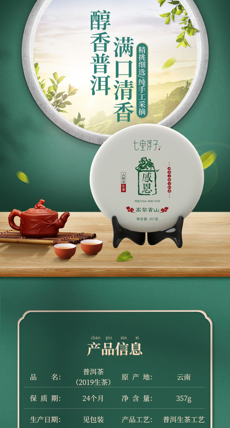 商品名称:七里浮子2019生普洱茶礼盒357g