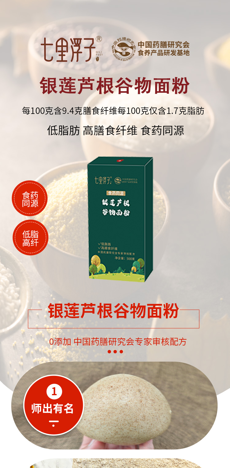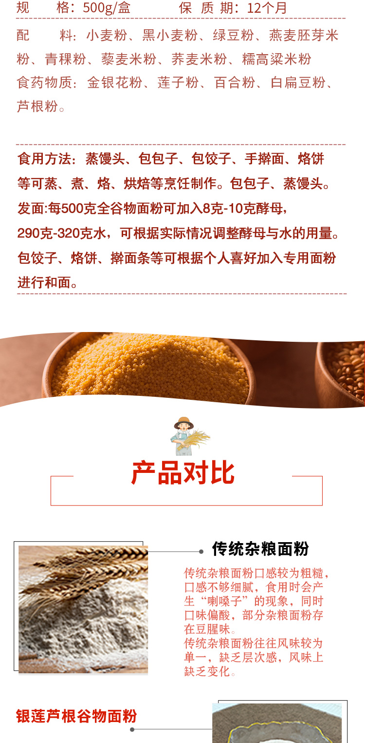商品名称:七里浮子银莲芦根谷物面粉500g