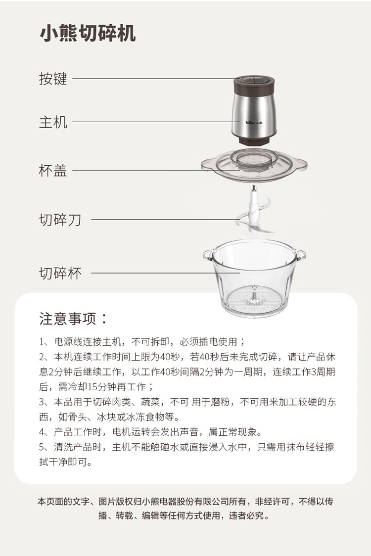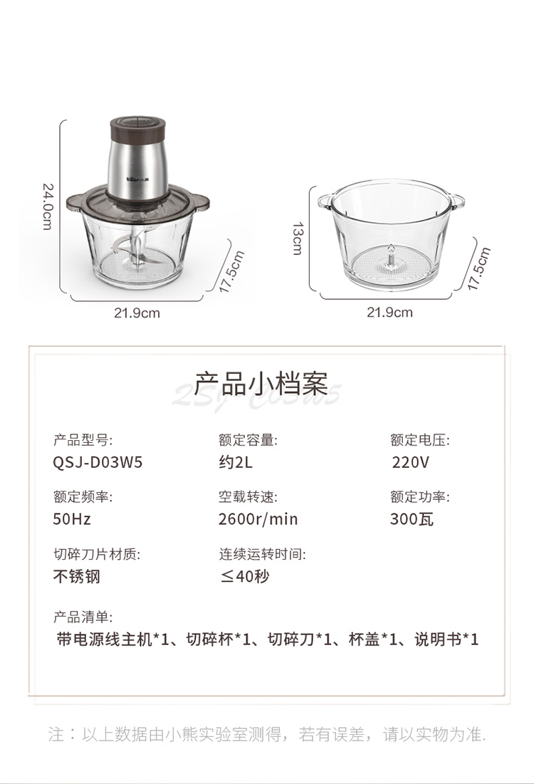 商品名称:Bear/小熊2升绞肉机QSJ-D03W5