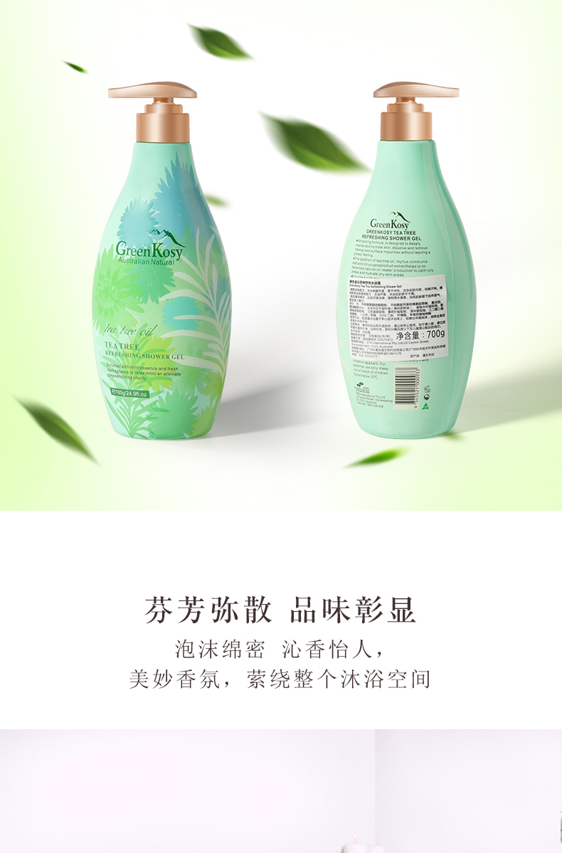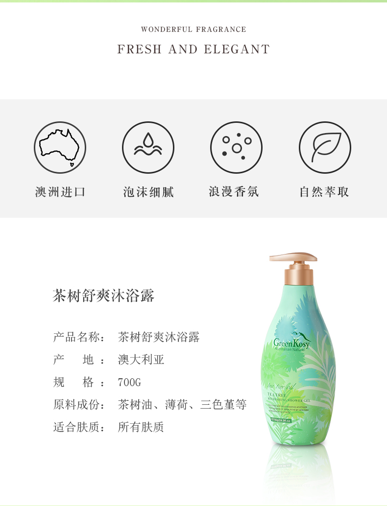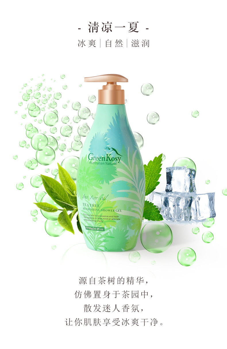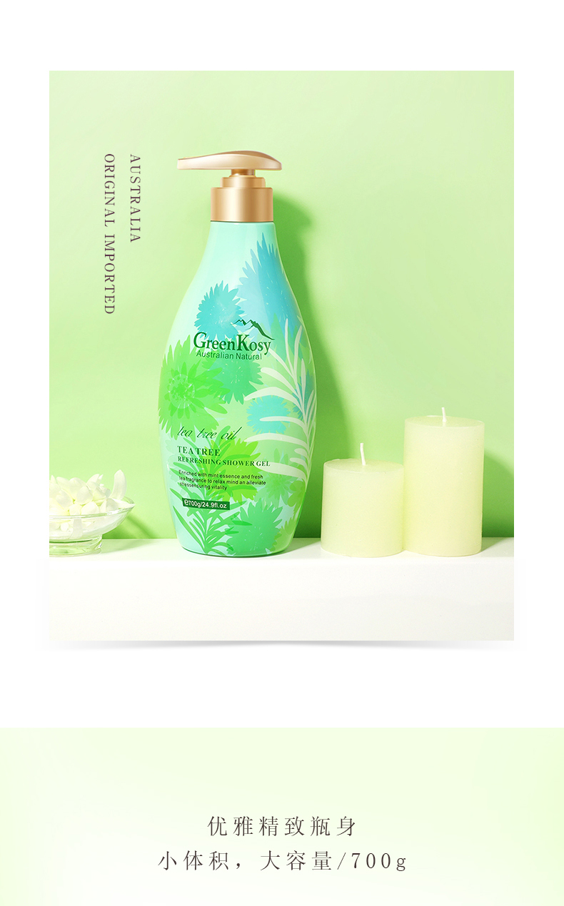 商品名称:GreenKosy/绿色溪谷茶树舒爽沐浴露700g