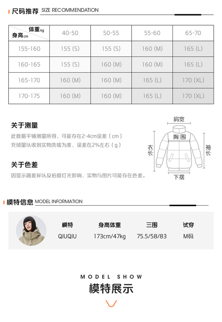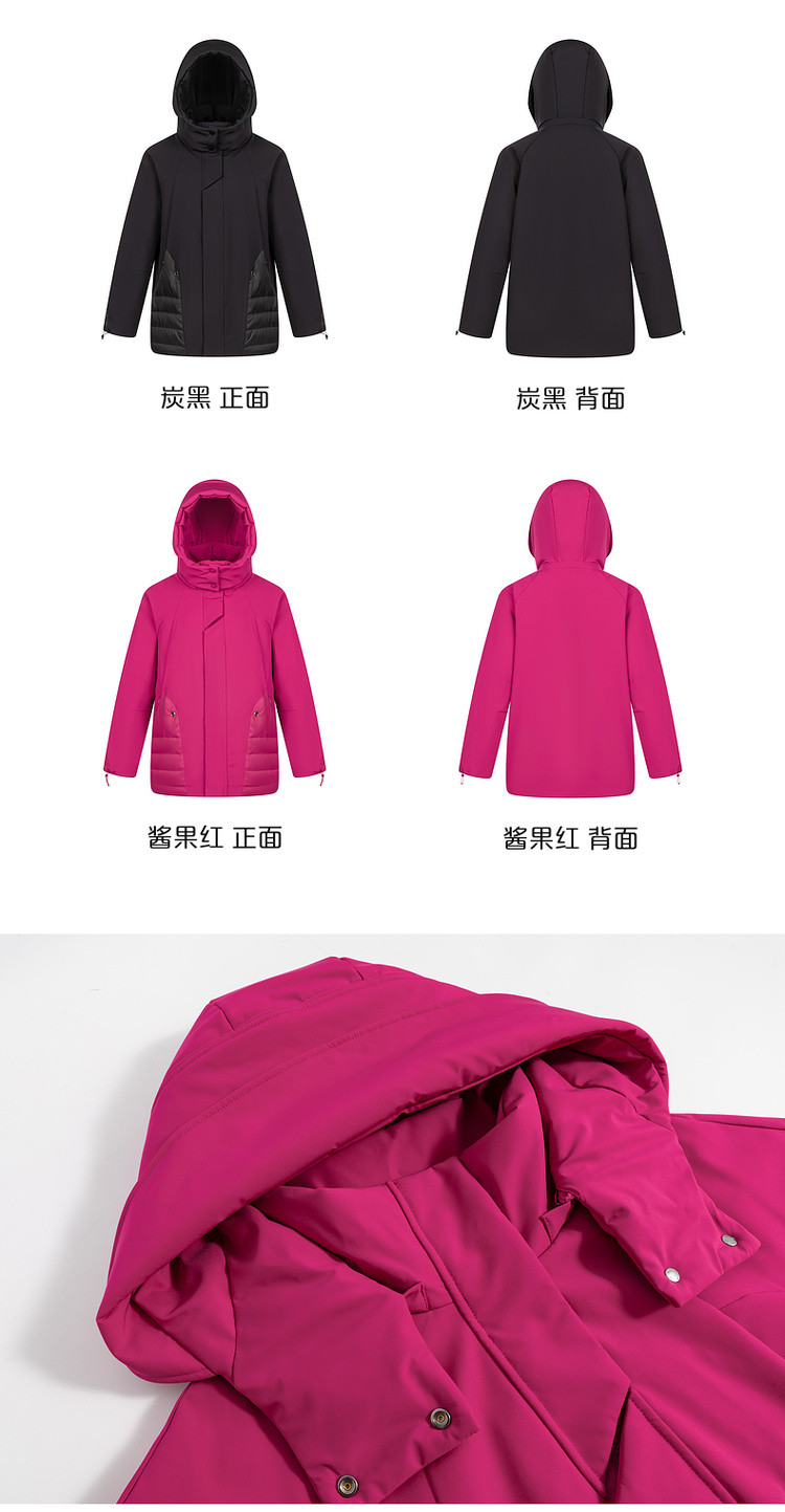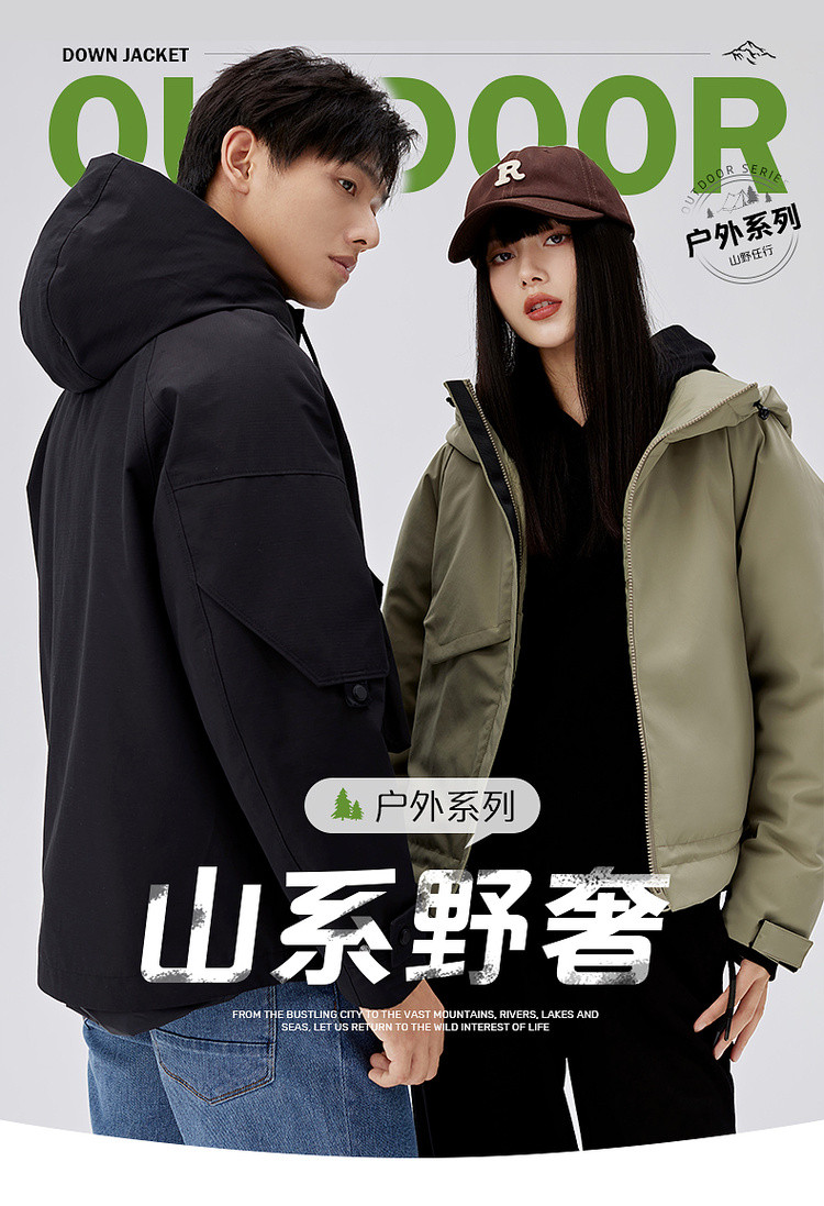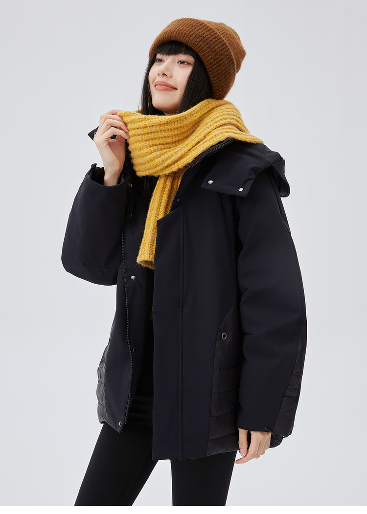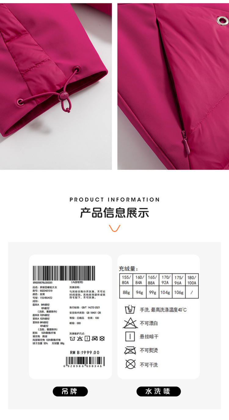 商品名称:时尚拼色户外工装外套保暖加厚短款鹅绒服户外羽绒服女 568342