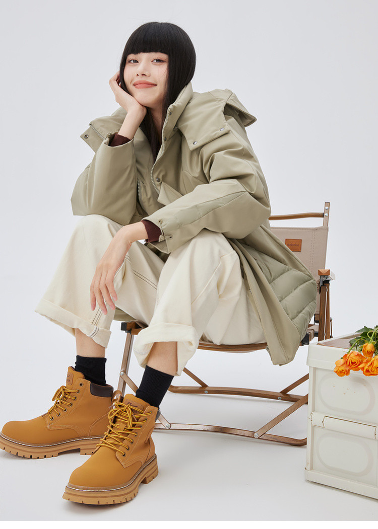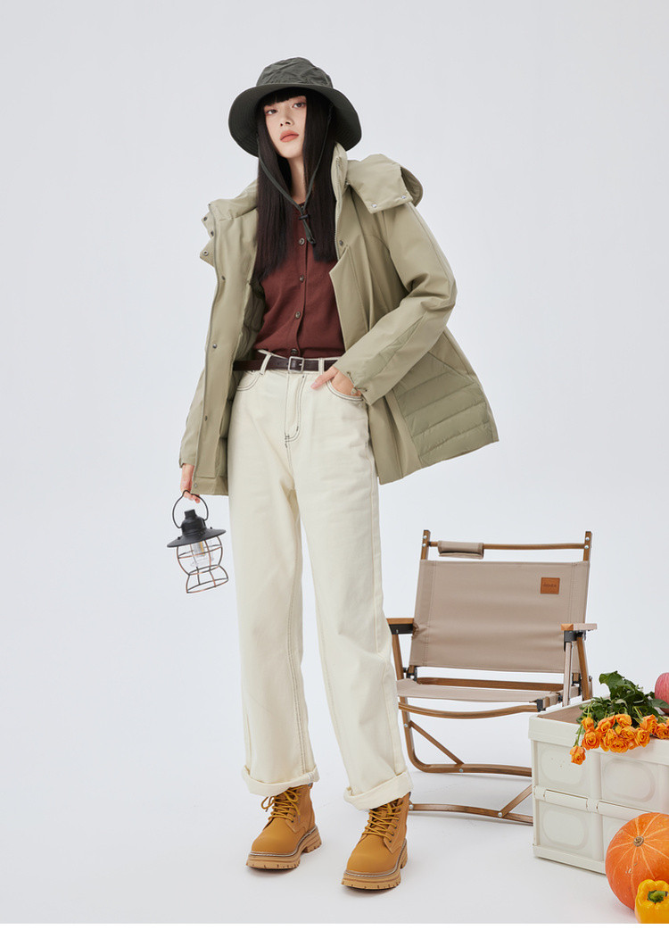 【90鸭绒】茧型长款连帽直筒保暖羽绒服女 246870