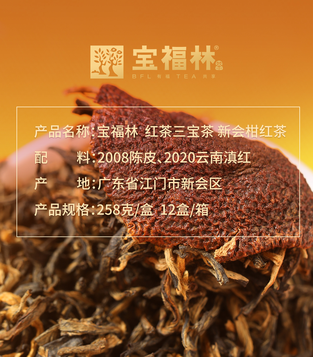 红茶三宝茶 CT-HCSBC 2008陈皮、2019云南滇红258克/盒