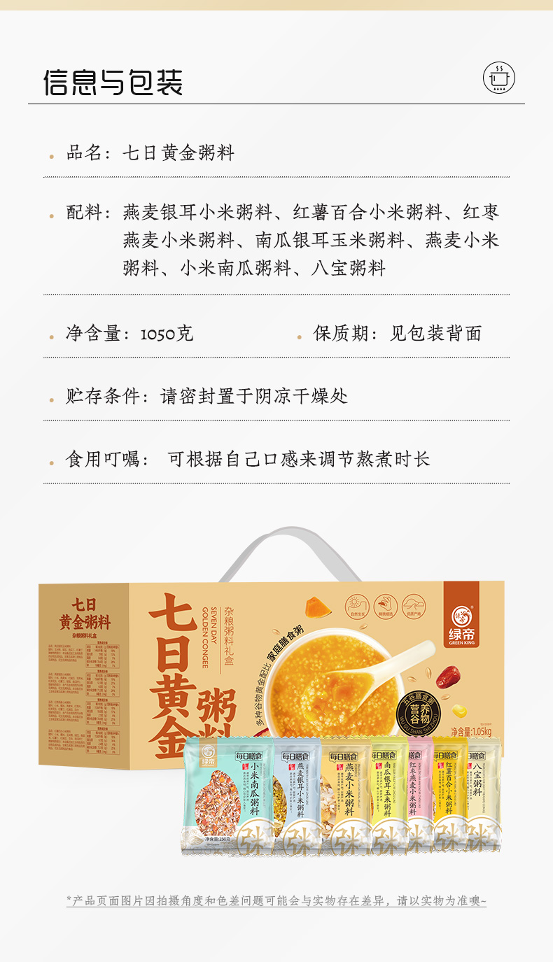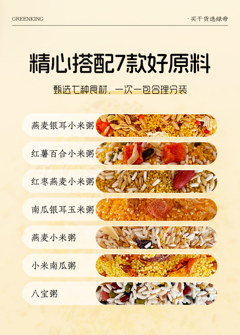 商品名称:GREEN KING/绿帝七日黄金粥料礼盒1.05kg