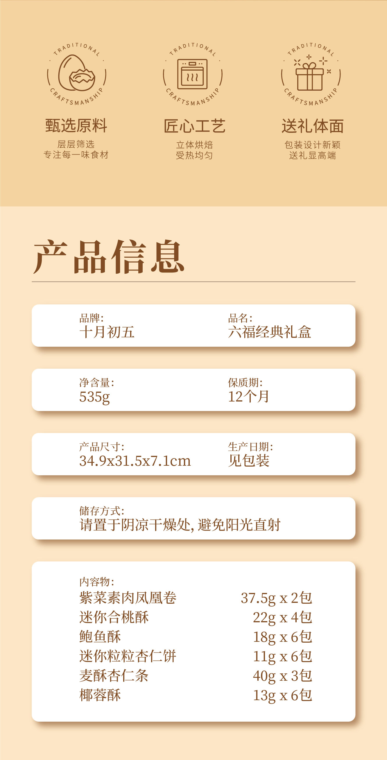 商品名称:十月初五六福经典(新版)饼干礼盒535g