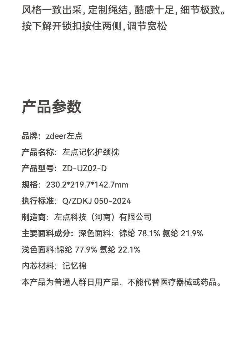 商品名称:zdeer/左点记忆护颈枕ZD-UZ02-D