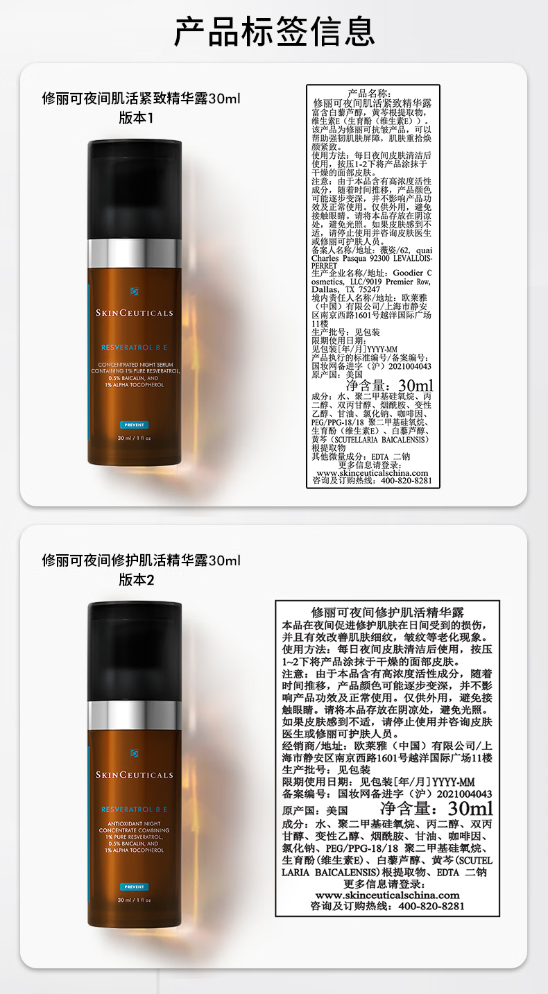 商品名称:修丽可肌活修护夜间精华凝露30ml(专柜版)