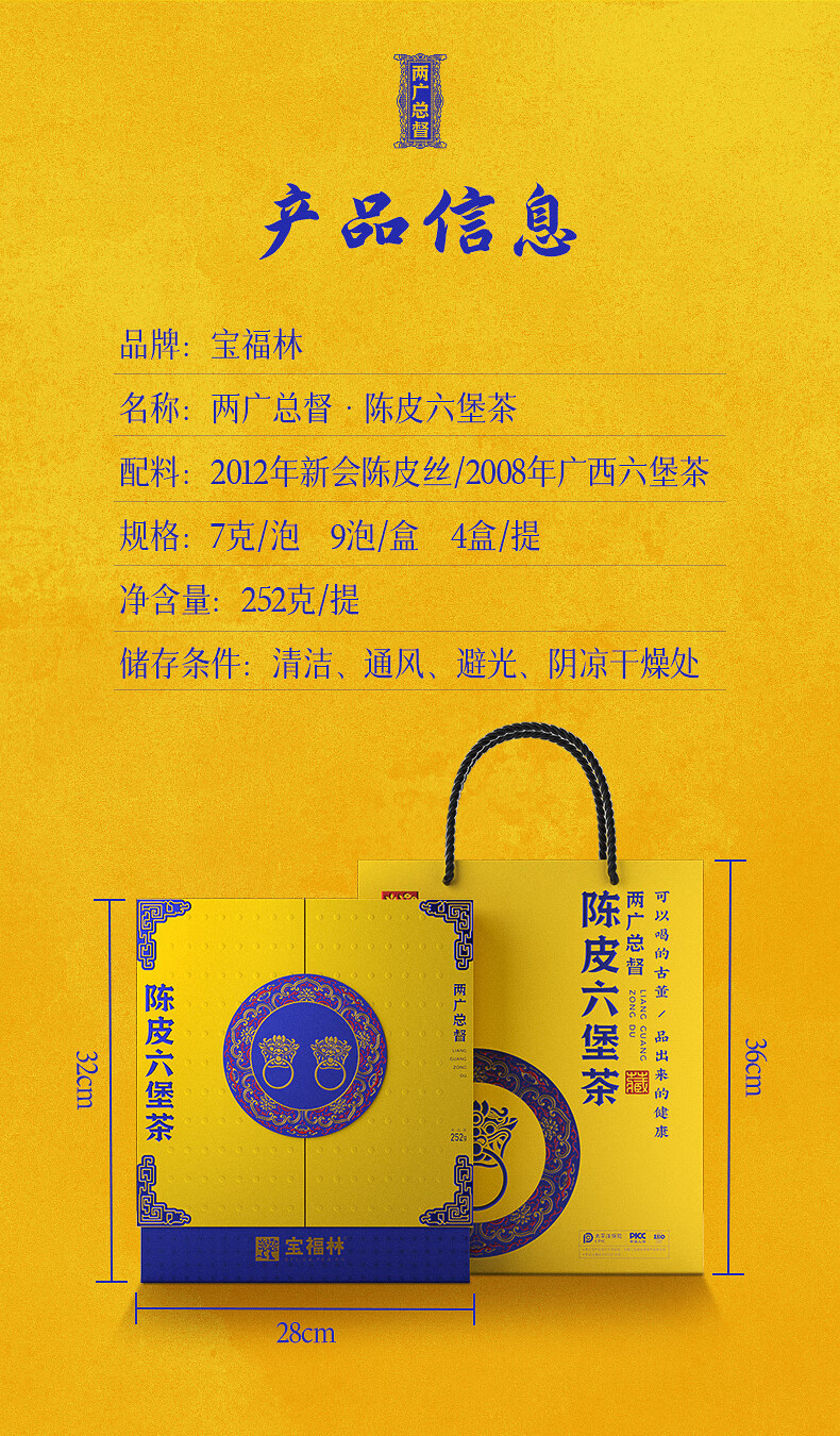 商品名称:宝福林两广总督·陈皮六堡茶礼盒252g BFL-CPLBC