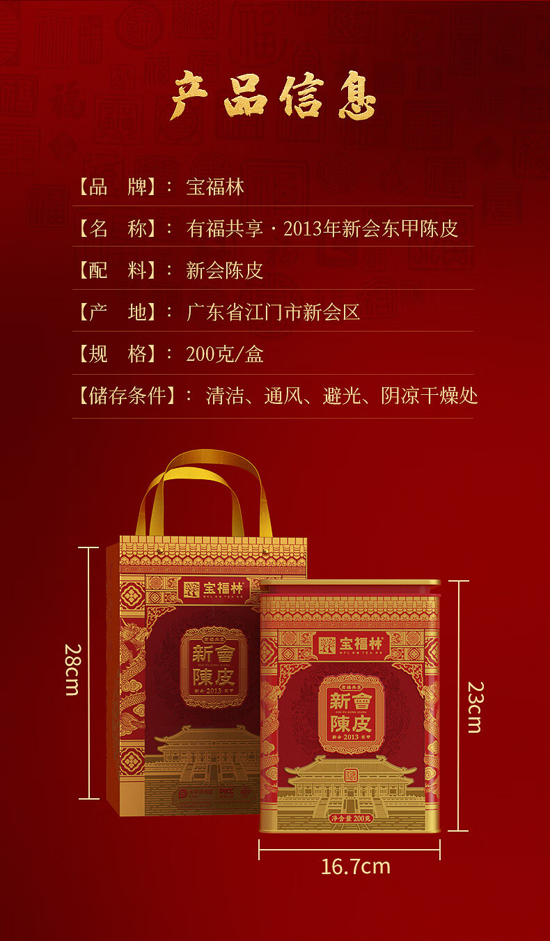 商品名称:宝福林有福共享2013年新会东甲陈皮200g XHCP-YFGX