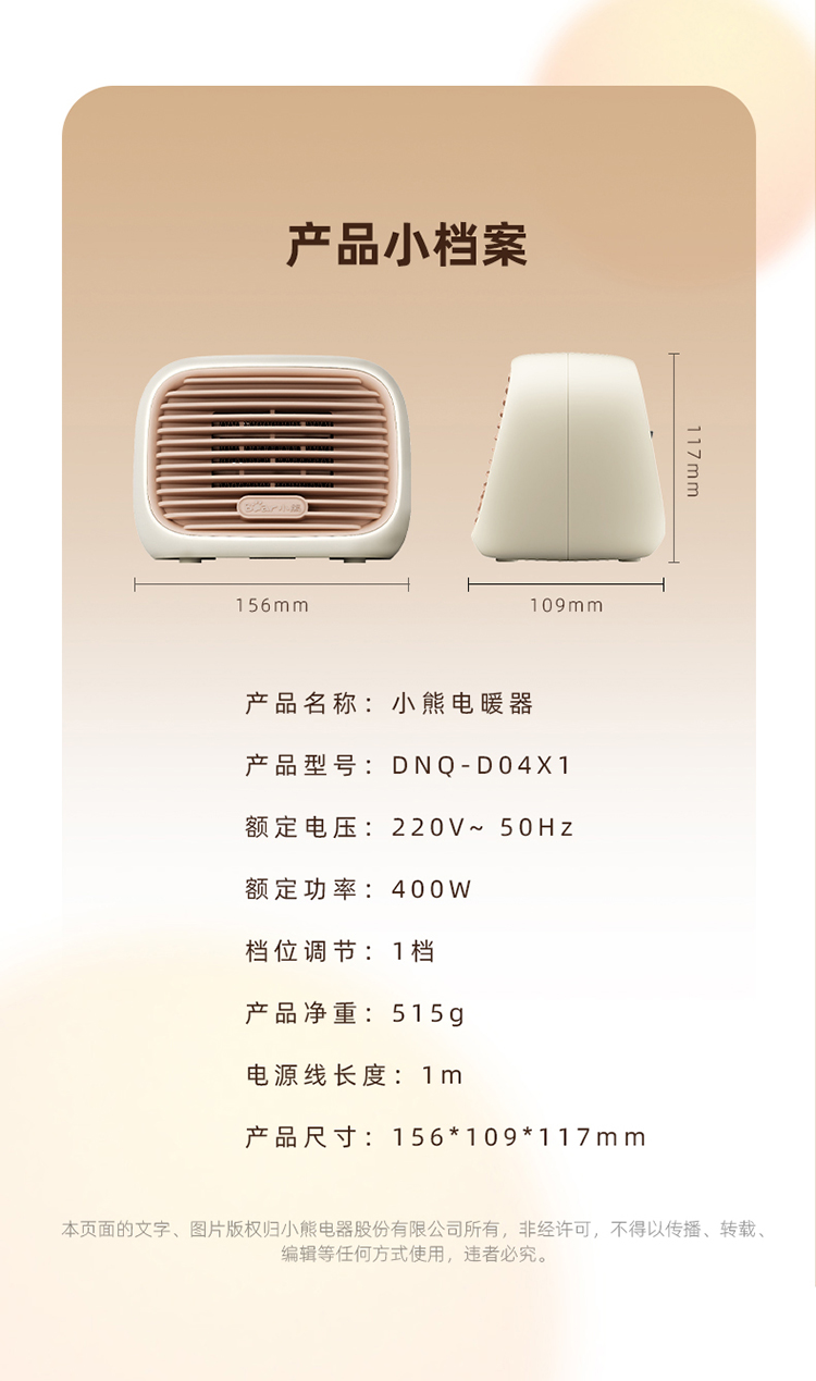 商品名称:Bear/小熊电暖器DNQ-D04X1
