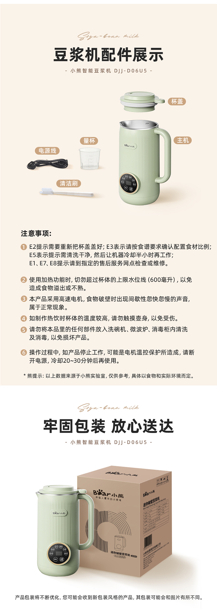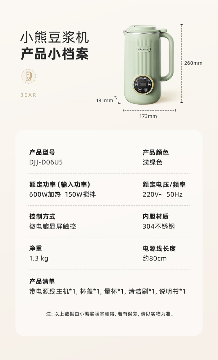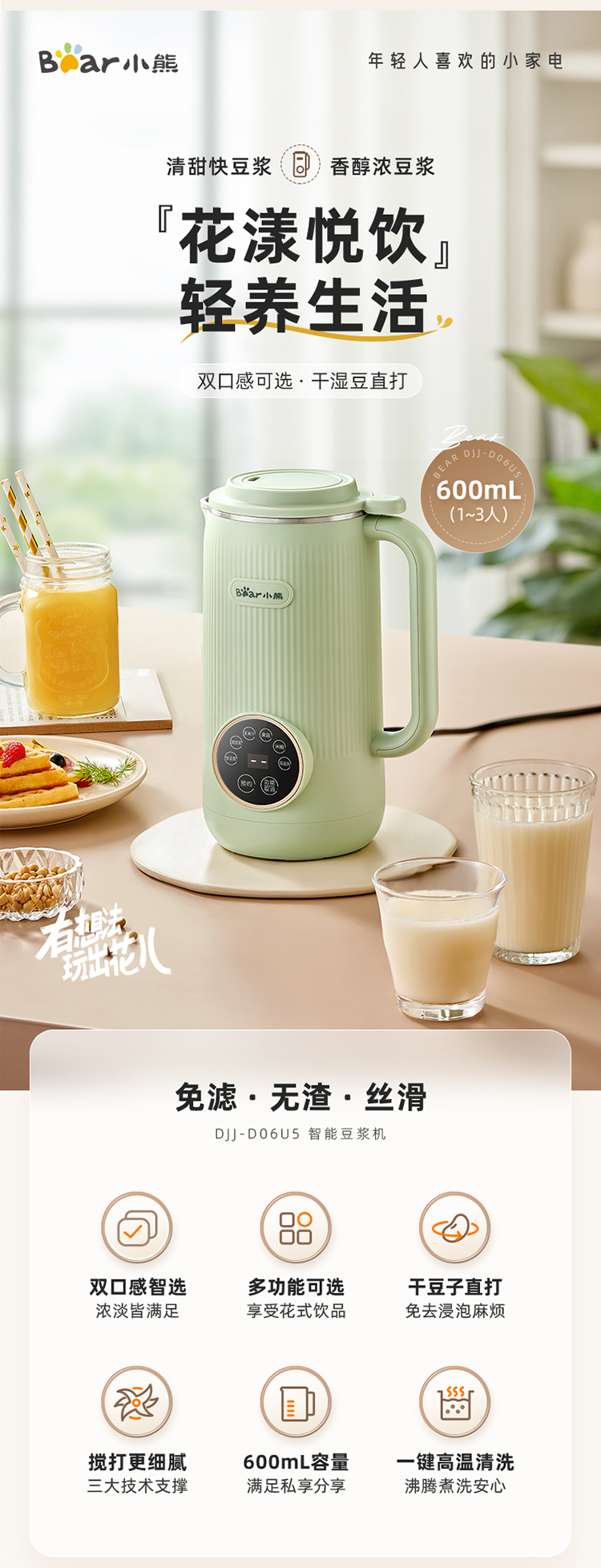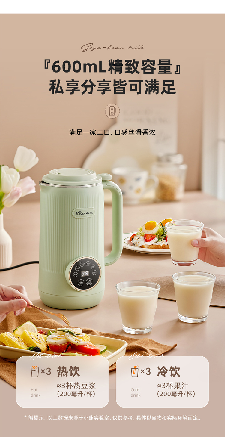 商品名称:Bear/小熊600毫升豆浆机-浅绿色DJJ-D06U5