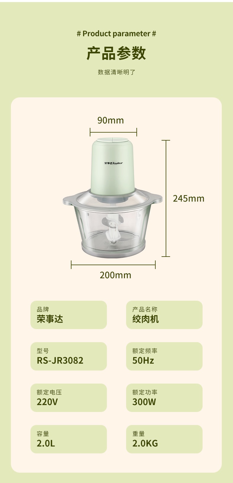 商品名称:Royalstar/荣事达2升绞肉机RS-JR3082