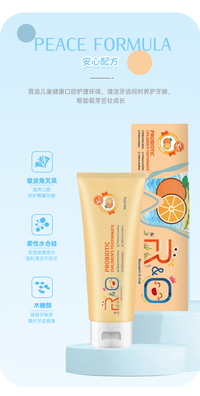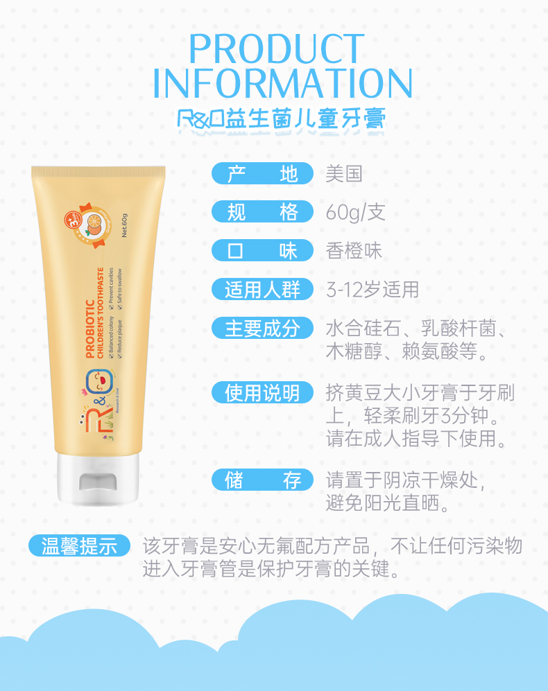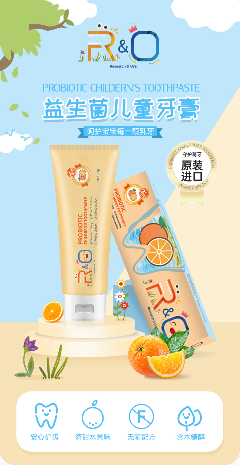 商品名称:R&O美国进口益生菌儿童牙膏-香橙味60g