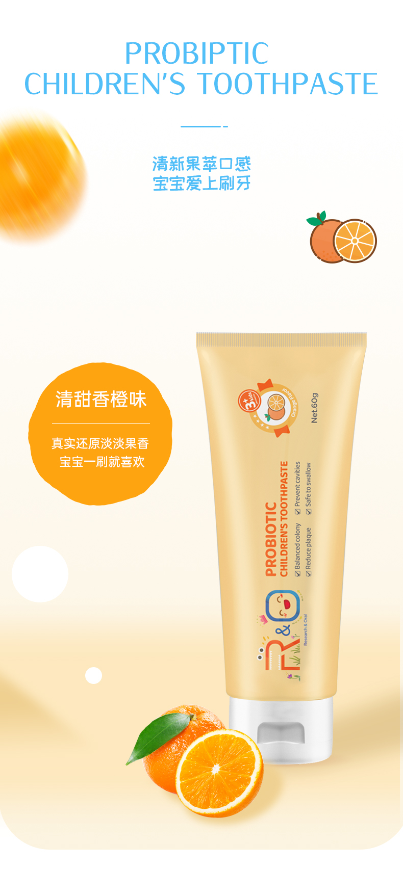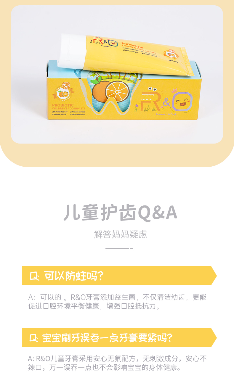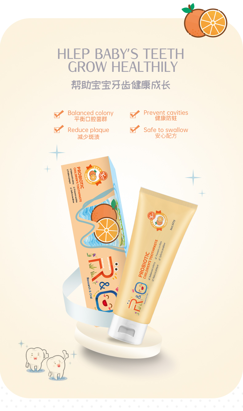 商品名称:R&O美国进口益生菌儿童牙膏-香橙味60g