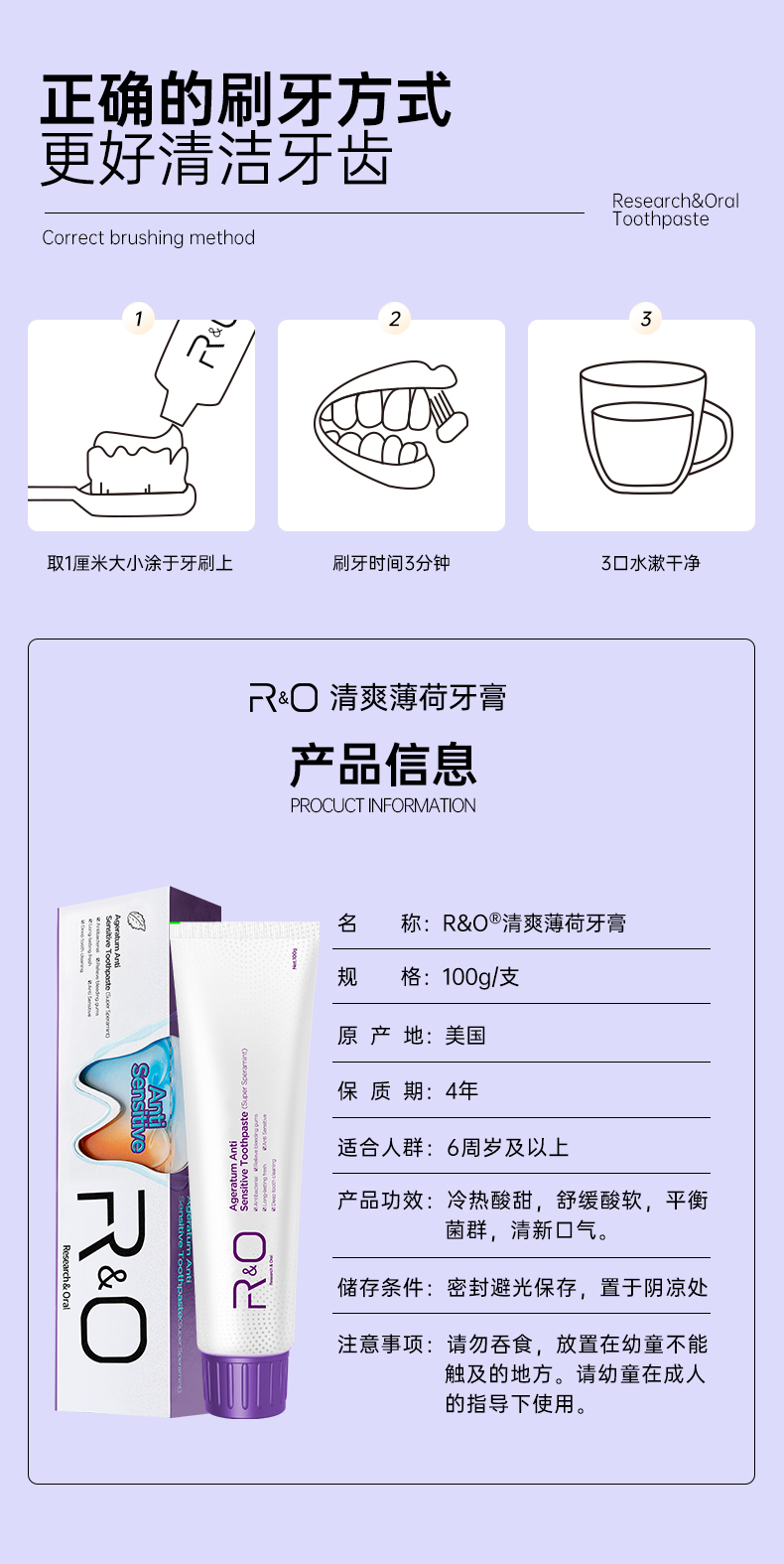 商品名称:R&O美国进口清爽薄荷牙膏100g