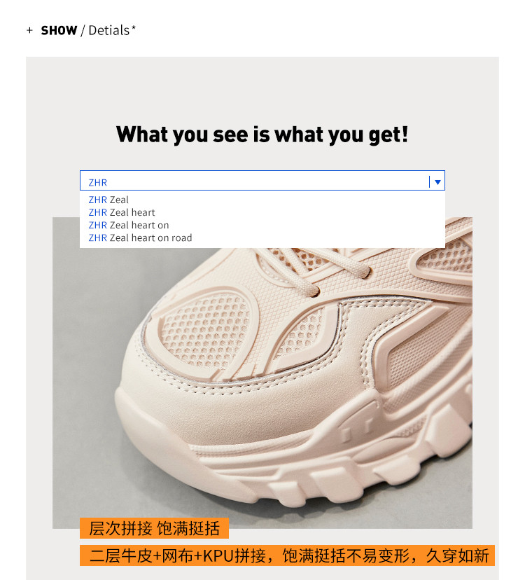 商品名称:【国潮优选】情侣款厚底鞋女增高休闲鞋运动鞋女老爹鞋女鞋小白鞋 962944