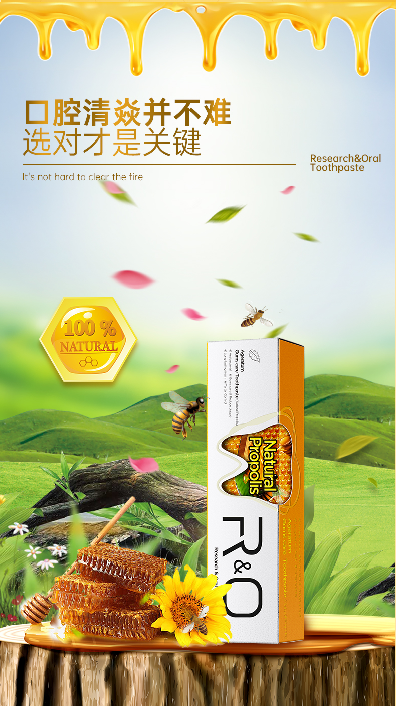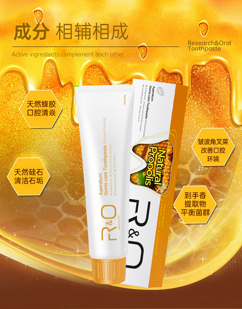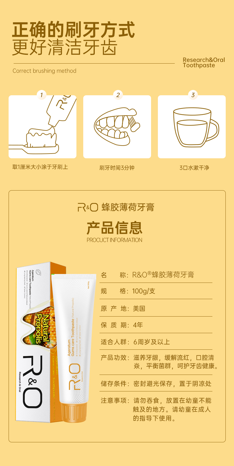 商品名称:R&O美国进口蜂胶薄荷牙膏100g