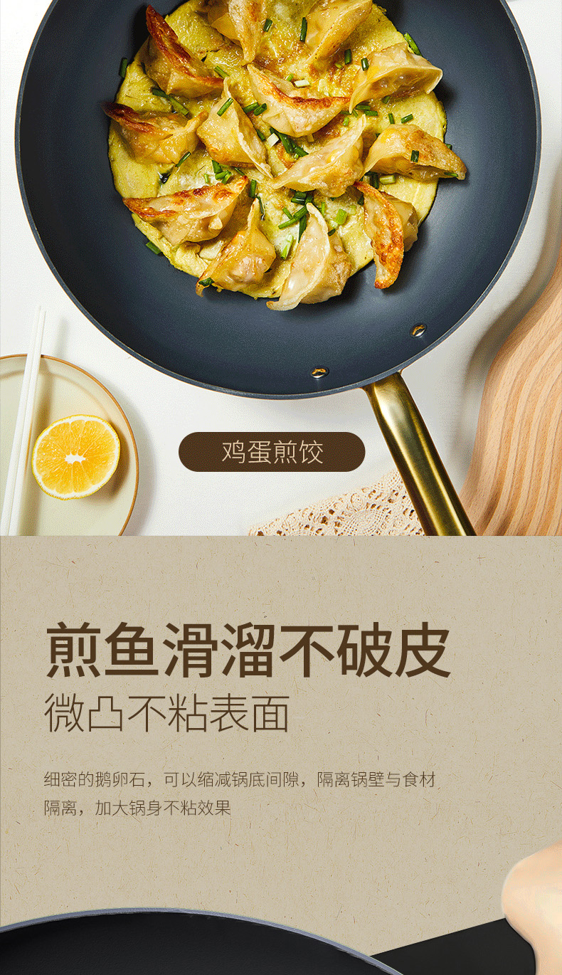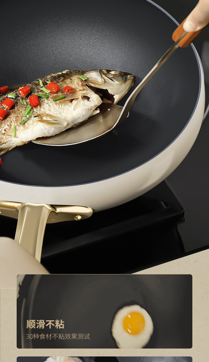 【顺丰配送】VELOSAN/温仑山32cm无涂层鹅卵石不粘炒锅-白色VE038