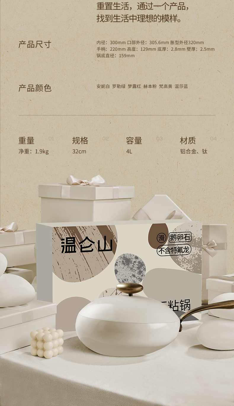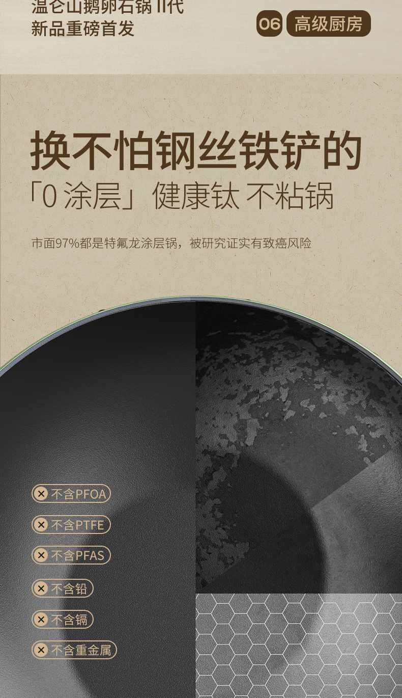 商品名称:【顺丰配送】VELOSAN/温仑山32cm无涂层鹅卵石不粘炒锅-白色VE038