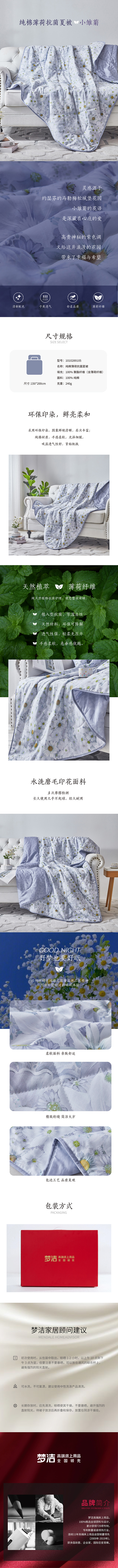 商品名称:梦洁小雏菊纯棉薄荷抗菌夏被150*200cm 240g