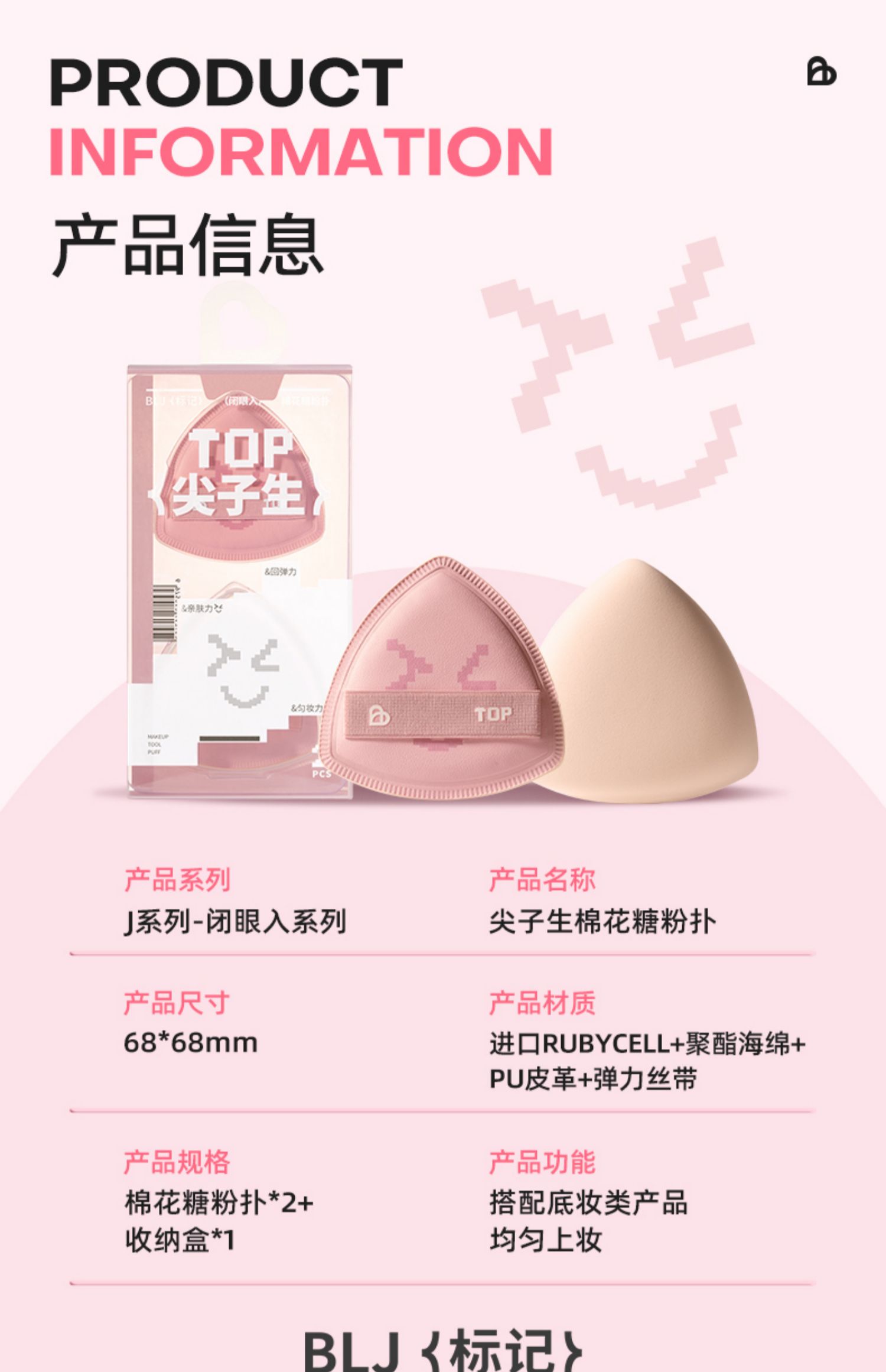 商品名称:BLJ/标记 尖子生粉扑 2枚装