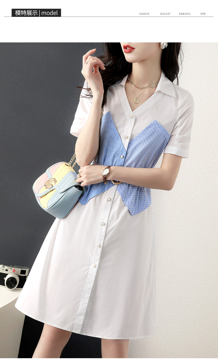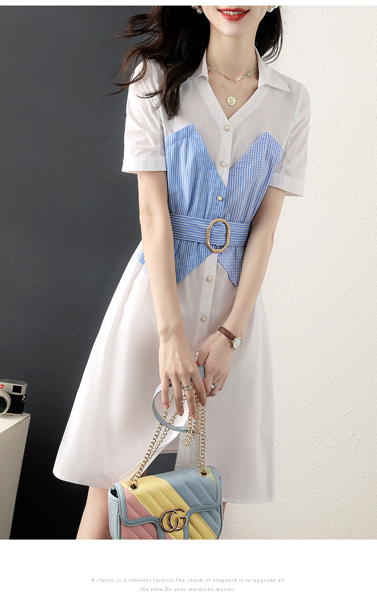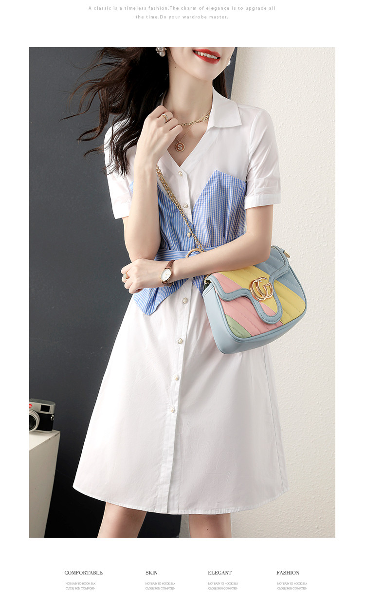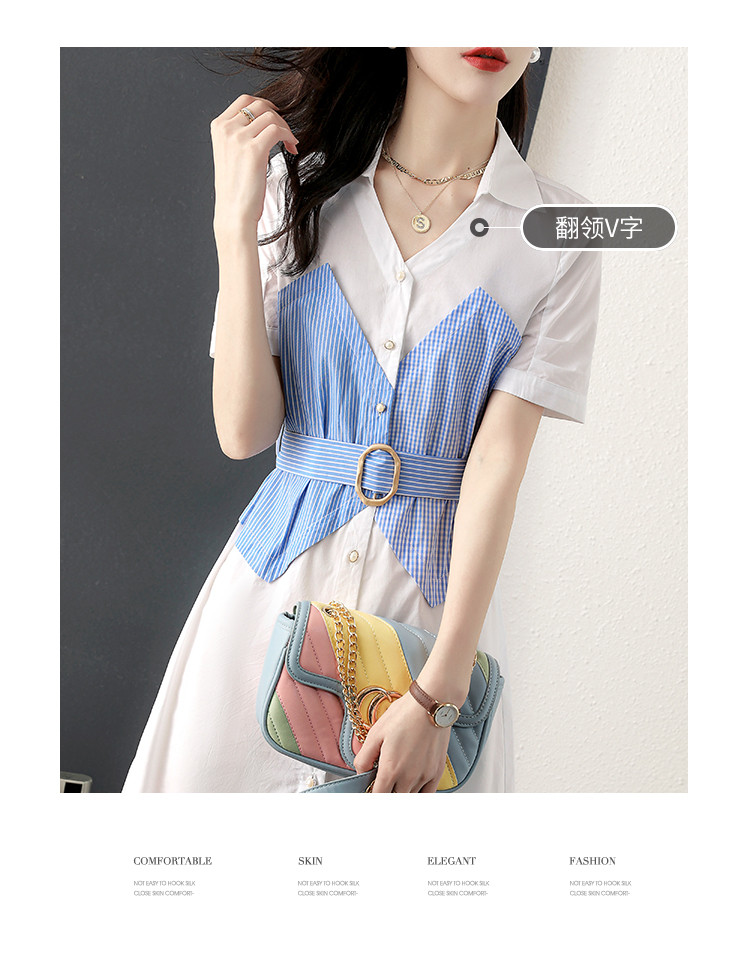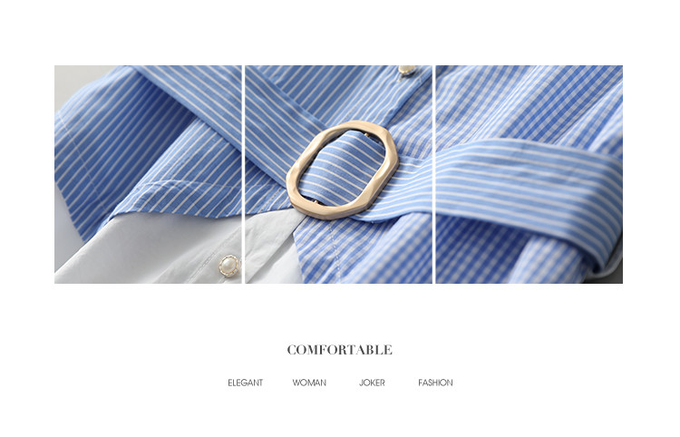 商品名称:2025夏季新款文艺休闲藏肉修身显瘦减龄拼接条纹衬衫连衣裙 463753