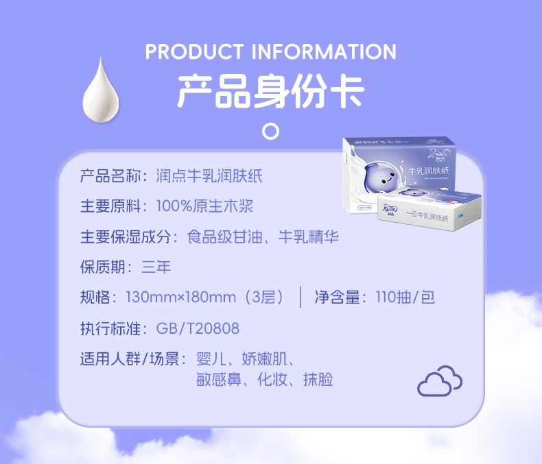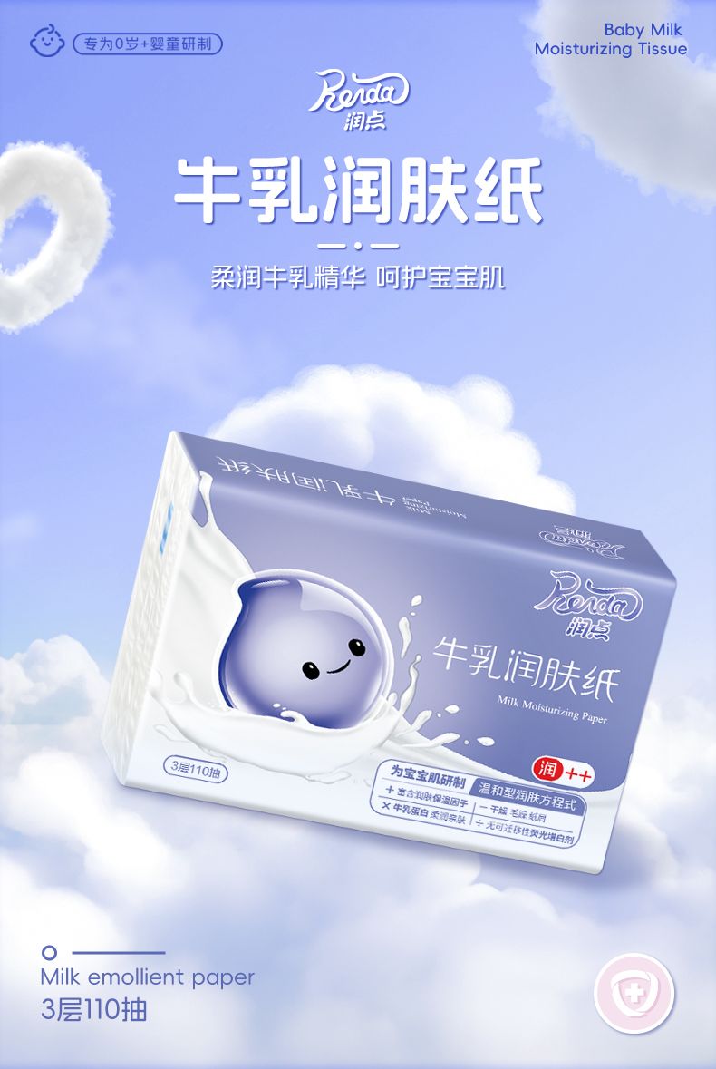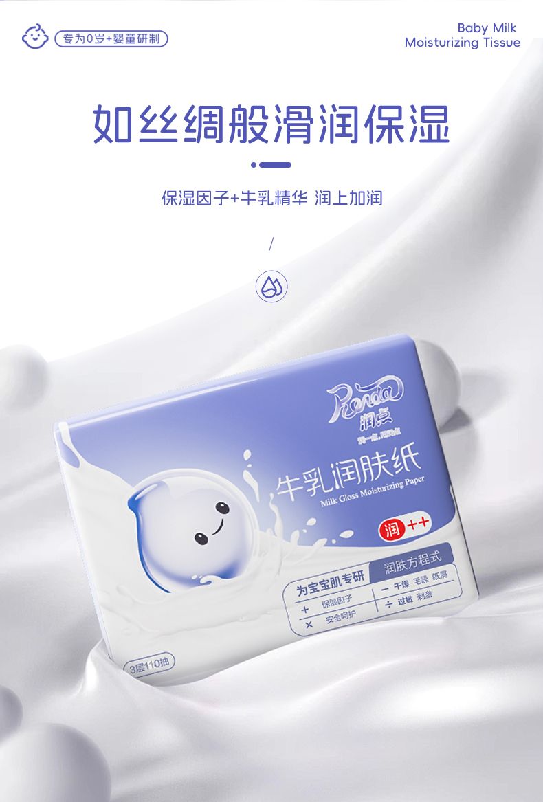 润点 牌牛乳系列润肤纸 3层110抽18包装